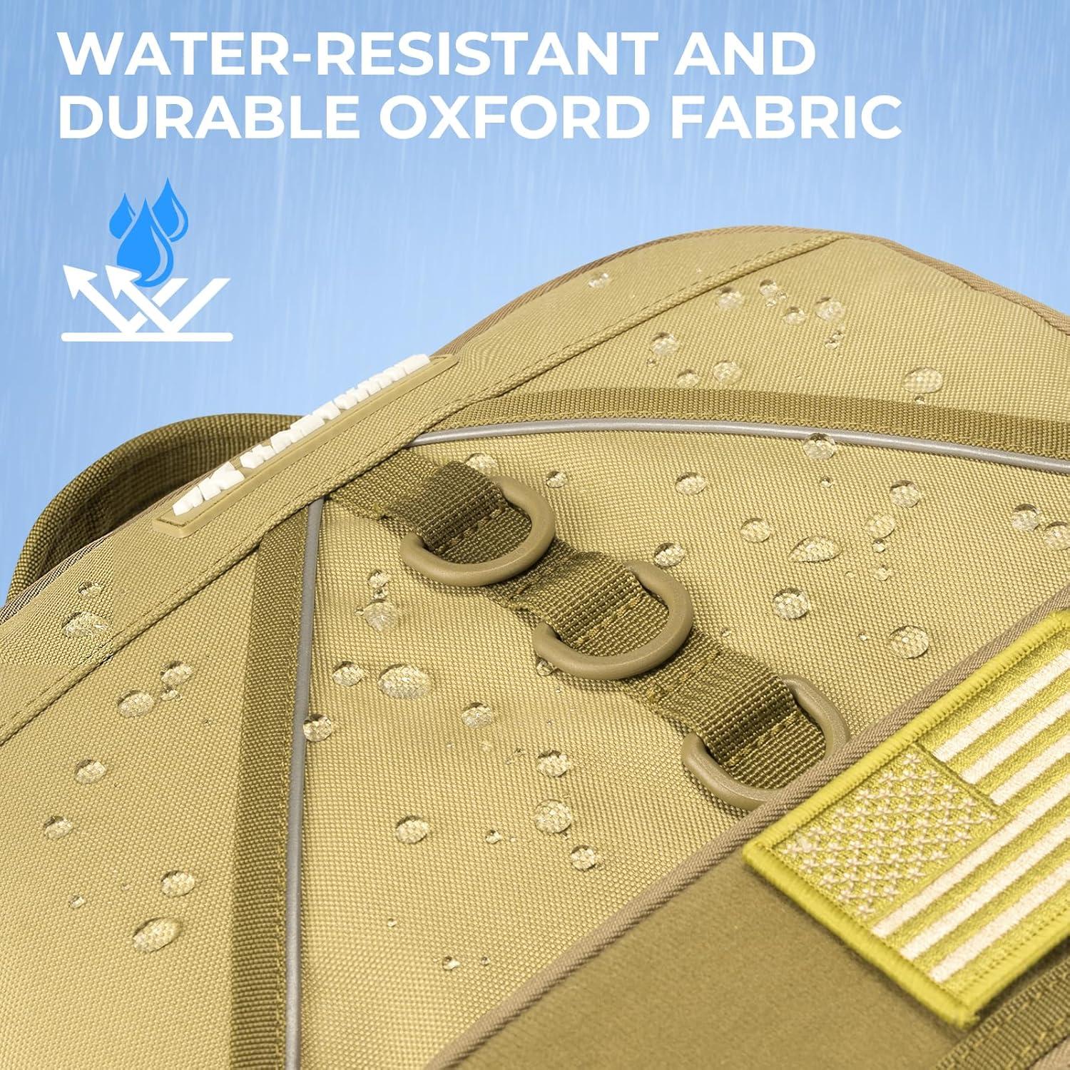 WATER-RESISTANT AND DURABLE: This fishing tackle backpack with rod holders is made of tough high-density Oxford 600D fabric and 210D lining for exceptional long-term performance and reliability. The water-resistant PVC coating ensures your belongings stay dry. The bottom is covered with fully water-resistant non-slip composite materials, plus two non-skid pads on the bottom that keep your bag firmly in place.