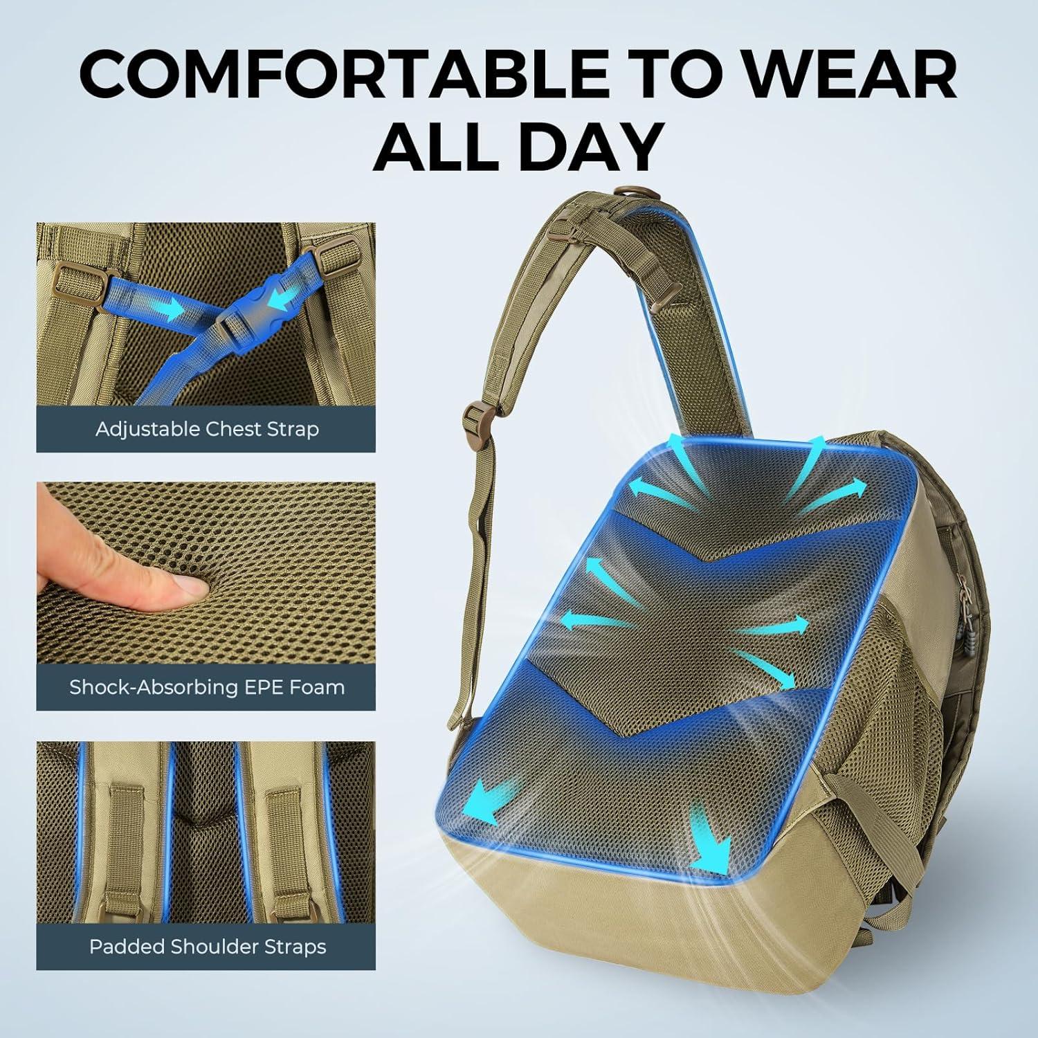 Comfortable to Wear All Day – Built for extended fishing trips, the KastKing KarryAll KastMate Fishing Tackle Backpack delivers superior comfort and support. Shock-absorbing EPE foam cushions your back, while padded shoulder straps help distribute weight evenly and reduce fatigue throughout the day. An adjustable chest strap keeps the pack secure as you move from spot to spot.