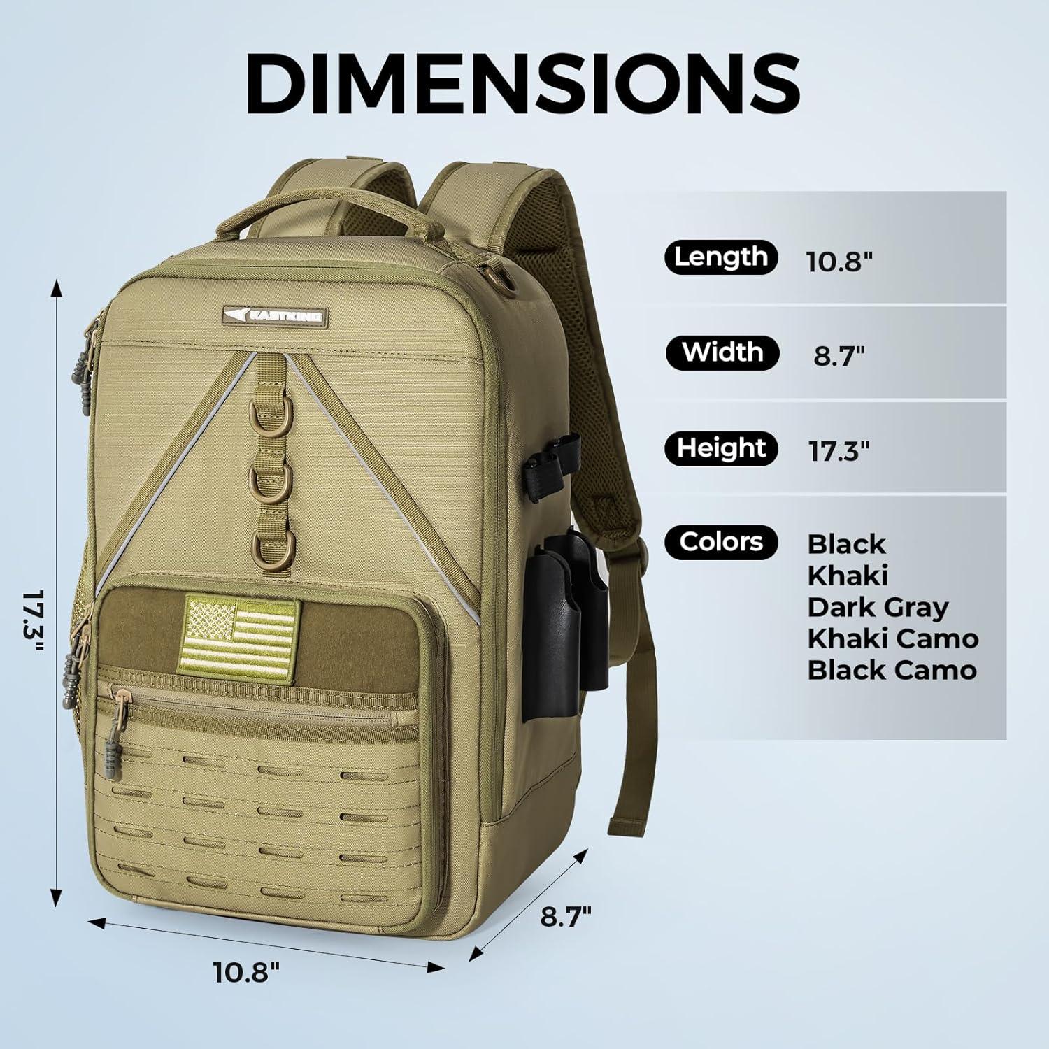 Dimensions & Colors – The KastKing KarryAll KastMate Fishing Tackle Backpack measures 10.8″ (L) X 8.7″ (W) X 17.3″ (H), offering a spacious yet compact design that's ideal for shore, kayak, or boat fishing. Available in a range of stylish color options—Black, Khaki, Dark Gray, Khaki Camo, and Black Camo—so you can match your gear to your personal style.
