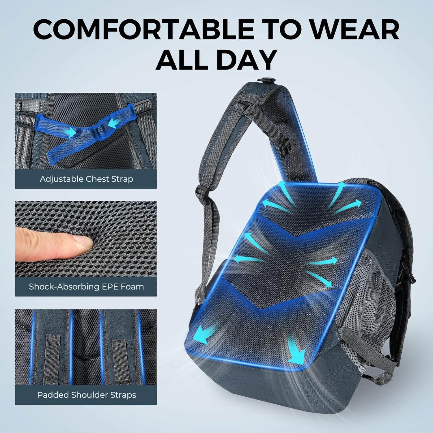 Comfortable to Wear All Day – Built for extended fishing trips, the KastKing KarryAll KastMate Fishing Tackle Backpack delivers superior comfort and support. Shock-absorbing EPE foam cushions your back, while padded shoulder straps help distribute weight evenly and reduce fatigue throughout the day. An adjustable chest strap keeps the pack secure as you move from spot to spot.