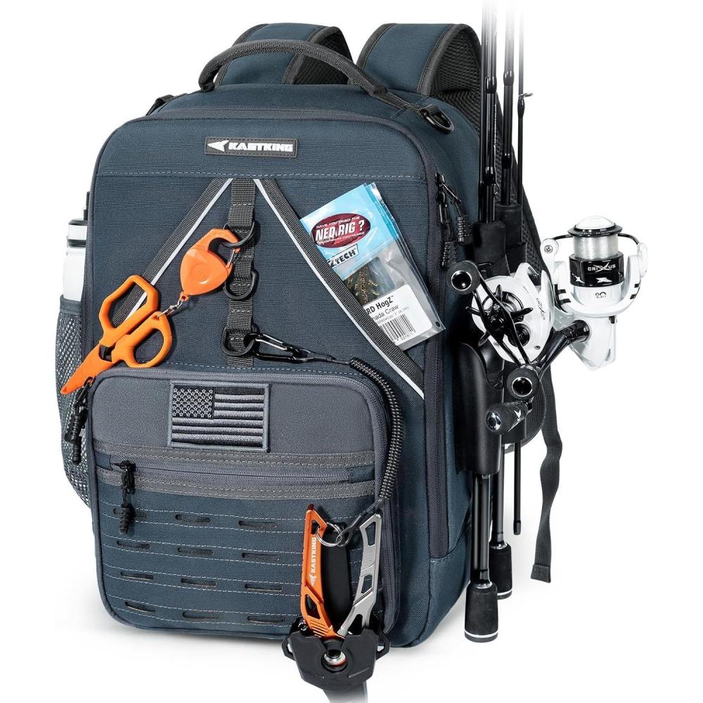 imageKastKing KarryAll KastMate Fishing Tackle BackpackWaterResistant Tackle Bag With 2 Rod HoldersFishing Gear and Equipment With Large Gear StorageBlackE Dark Gray