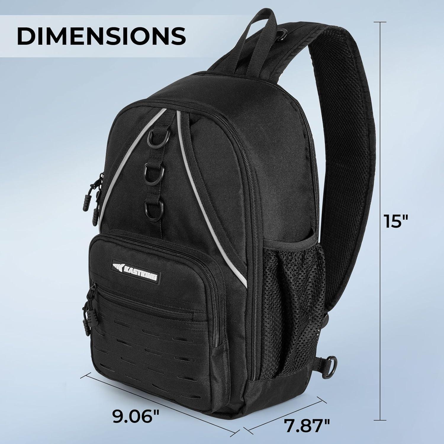 KastKing Karryall Sling Tackle Bag–Fishing Sling Pack,Fishing Backpack With Rod Holder,MOLLE System,Soft Bait & Gear Storage(A: Black)