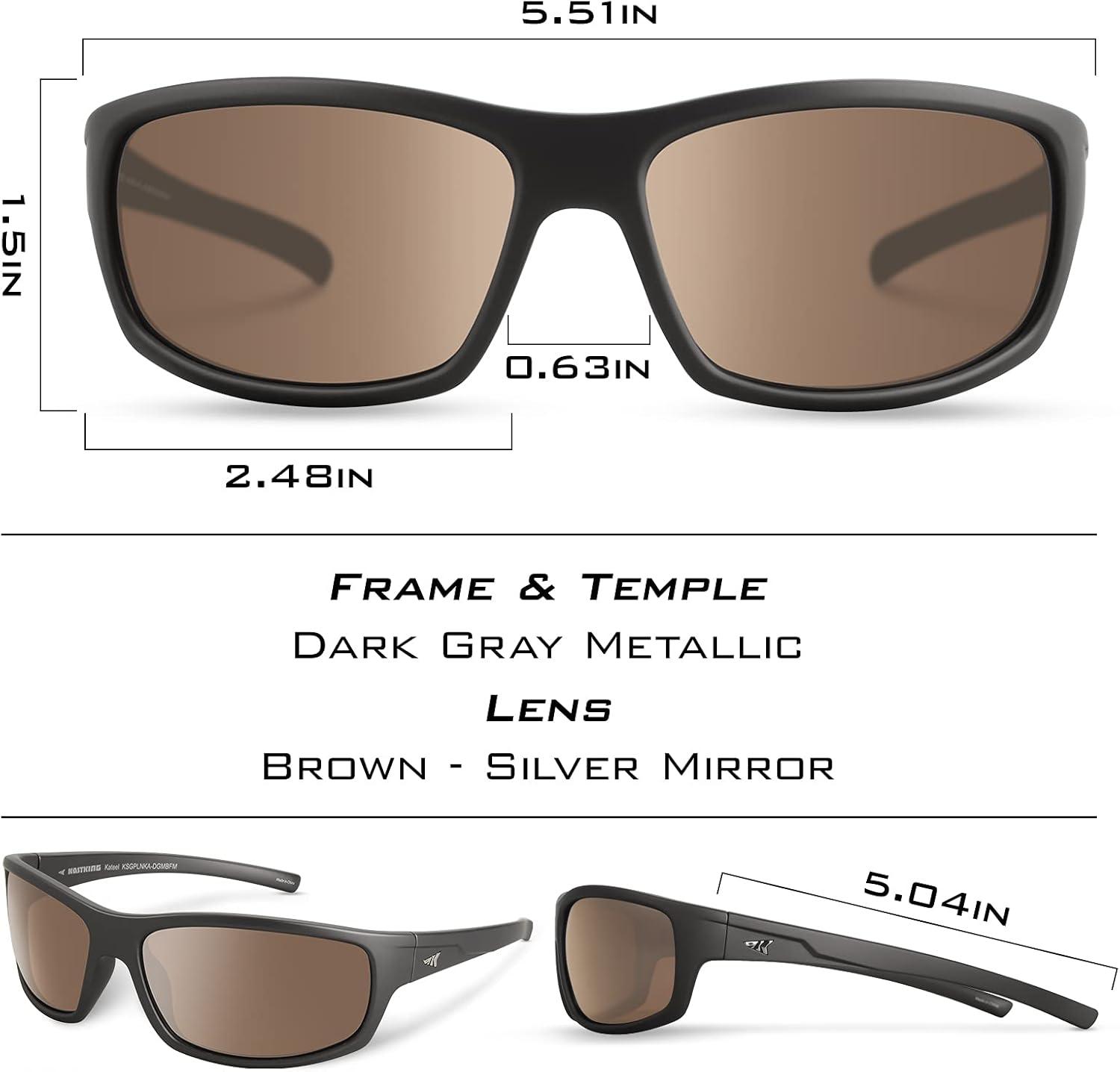 KastKing Kateel Polarized Sport Sunglasses for Men and Women, Ideal for Driving Fishing Cycling and Running,UV Protection(D: Frame: Dark Gray Metallic/Lens: Brown - Silver Mirror)