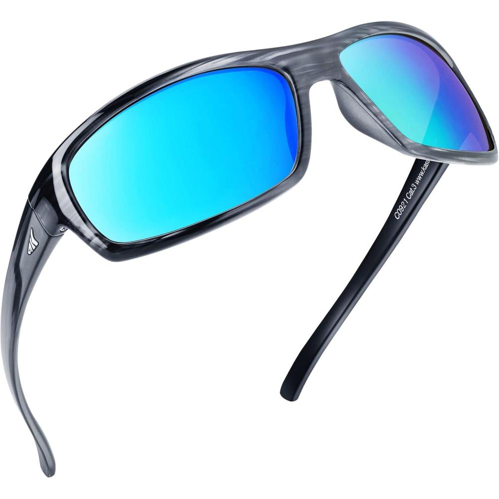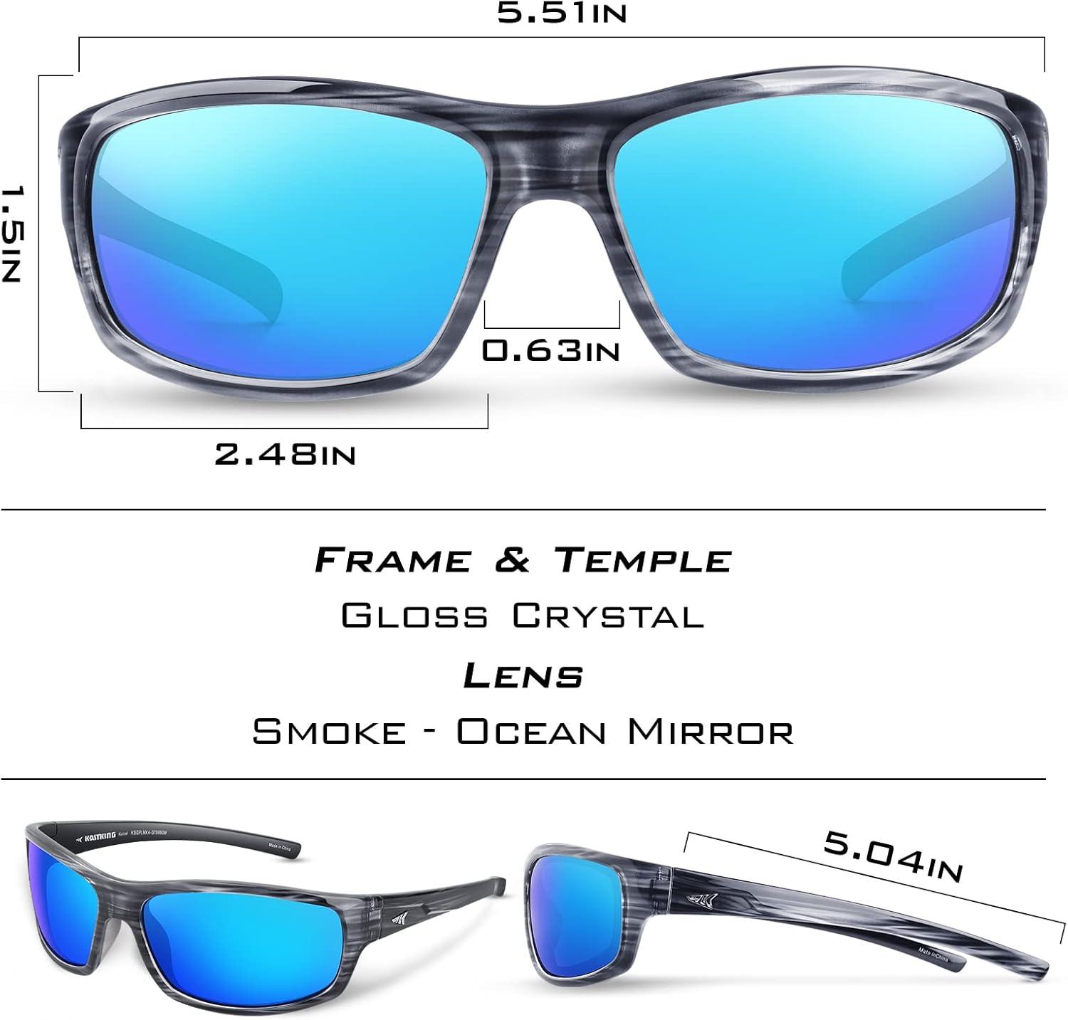 KastKing Kateel Polarized Sport Sunglasses for Men and Women, Ideal for Driving Fishing Cycling and Running,UV Protection(I: Frame: Gloss Tal Gray/Lens: Smoke - Ocean Mirror)