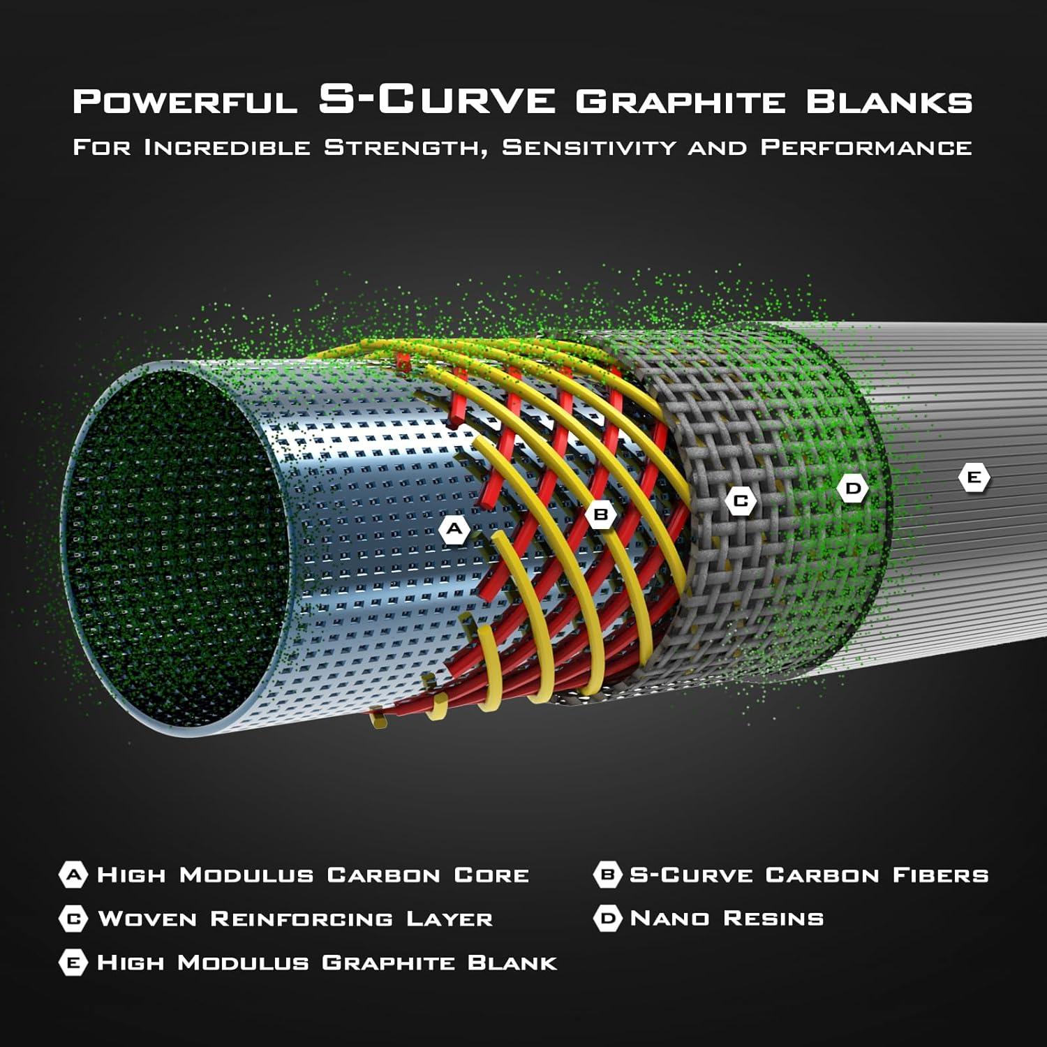 Powerful S-Curve Graphite Rod Blanks – KastKing KONG series rods are designed for anglers targeting massive fish in fresh and saltwater! These lightweight, powerful, 100% graphite blanks are made of high-strength S-Curve graphite reinforced with Nano-Resin technology that delivers amazing strength and lifting power but are still incredibly light and sensitive.