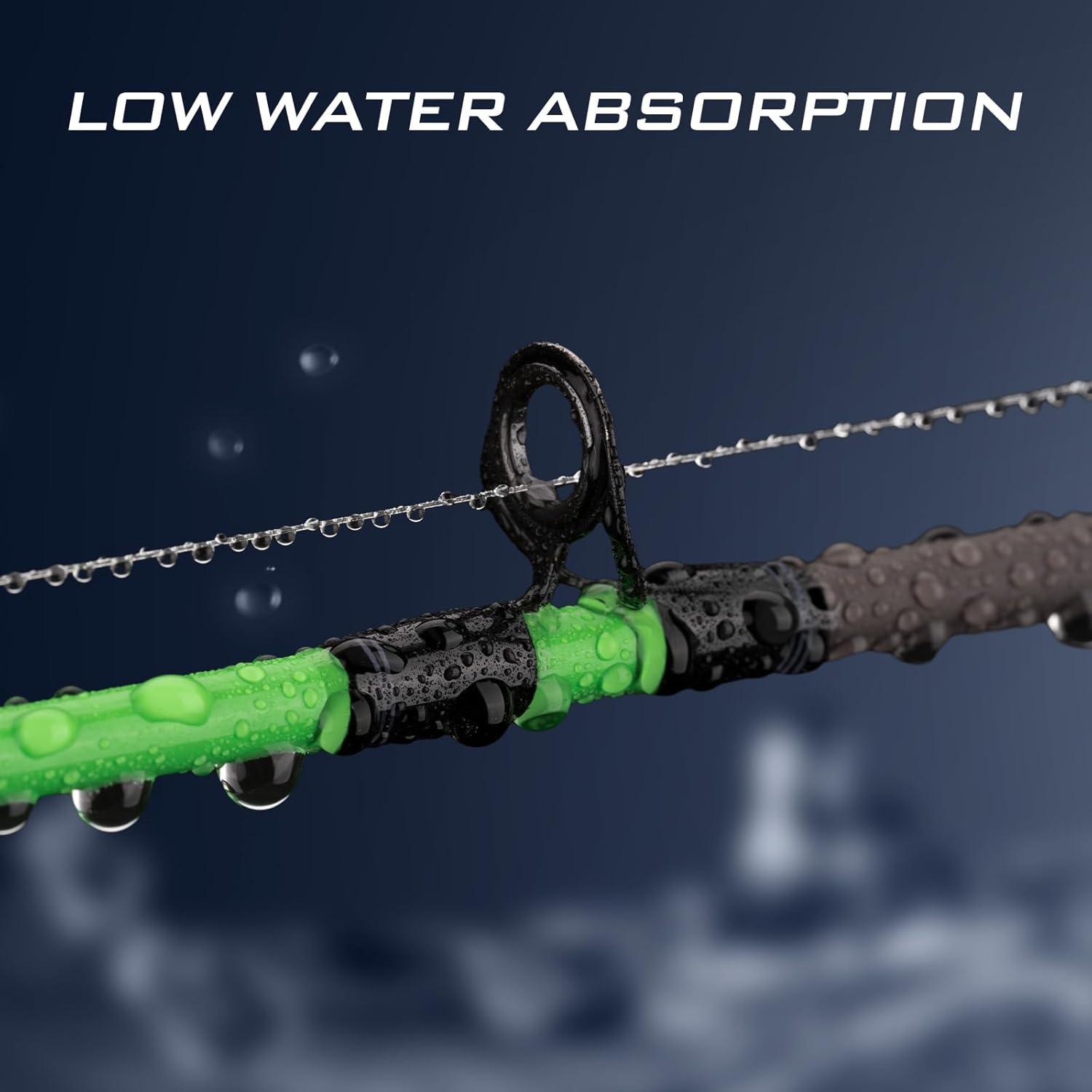 【FAST SINKING】Kovert Blue Water Fluorocarbon fishing leader is 78% heavier than water. This higher specific gravity makes it sink super-fast versus traditional monofilament line. A fast sinking line is a distinct advantage in many fishing situations when getting the bait or lure in front of the fish quickly, increases your catch rates.