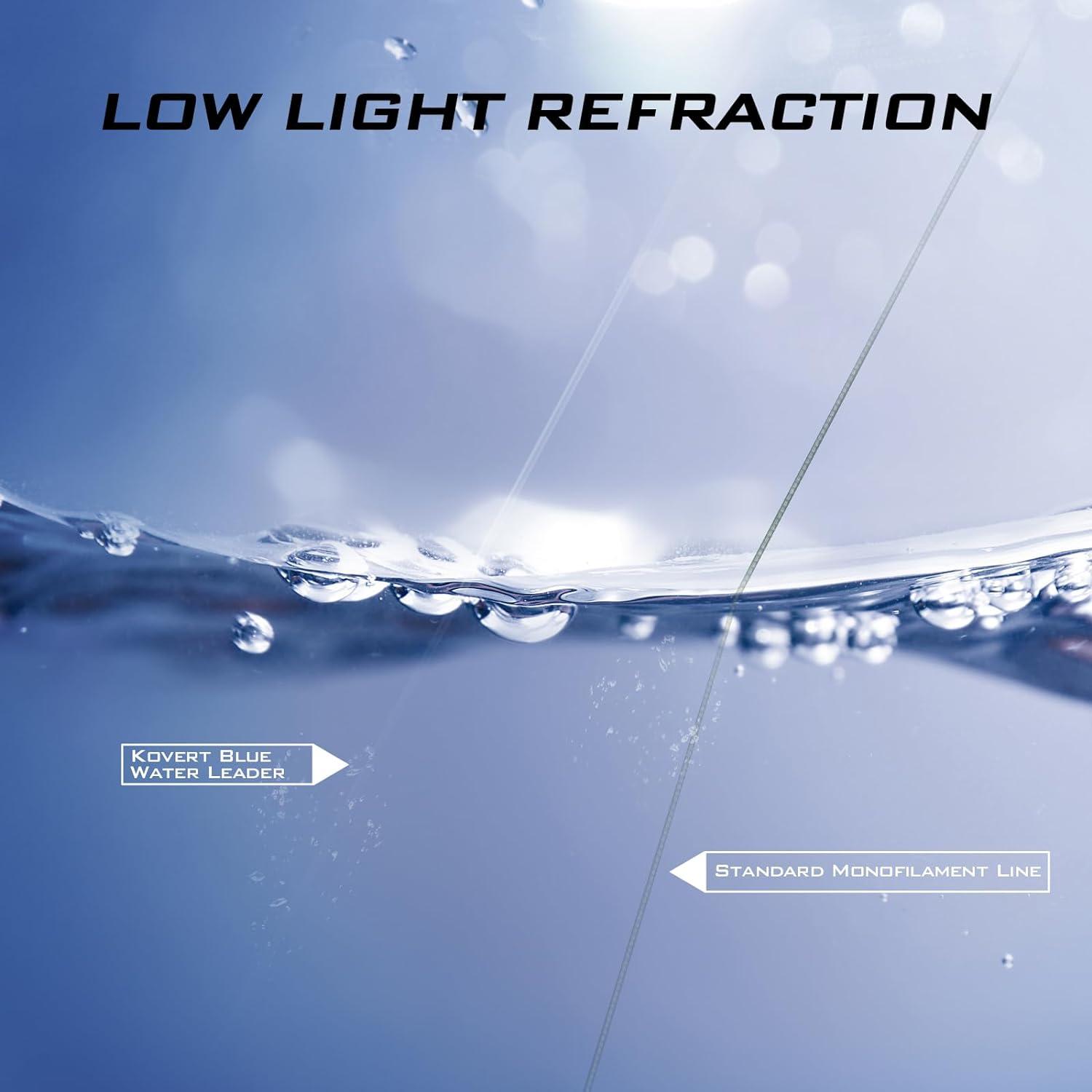 【LOW LIGHT REFRACTION】Kovert Blue Water Fluorocarbon fishing leader has a low light refractive index making it virtually invisible underwater. Kovert Blue Water Fluorocarbon fishing leader is perfect for highly pressured water or ultra-clear blue water conditions when you need a low visibility fishing line to increase your catch ratio. Fish just don’t see it underwater.