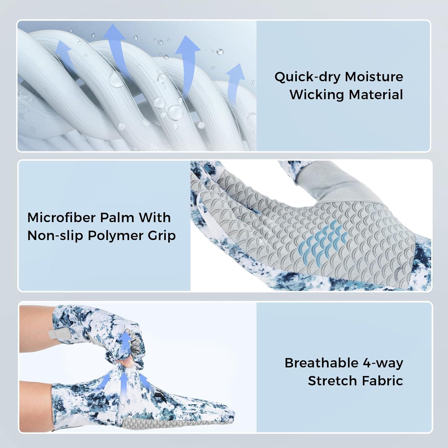 LIGHTWEIGHT AND ULTRA-SOFT COMFORT: These gloves are expertly crafted from lightweight, ultra-soft materials that offer a comfortable feeling against the skin. Designed for all-day wear, and ultralight microfiber in key area, they provide unmatched comfort, ensuring your hands remain cool and comfortable during extended use. Whether you're fishing, hiking, or engaged in outdoor activities, the soft fabric reduces irritation, making them perfect for long hours of wear in any environment.
