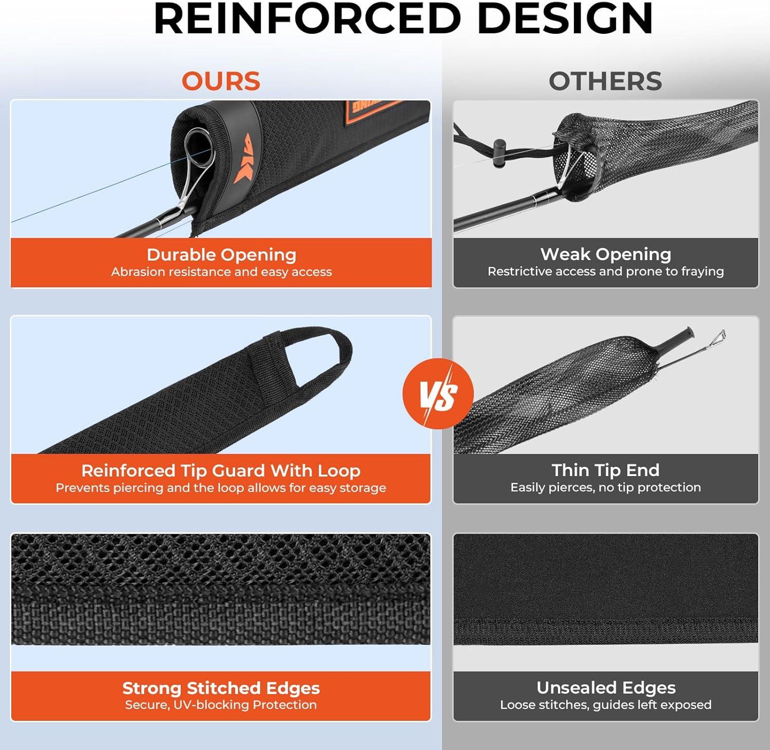 Tailored Fit With Adjustable Lanyard: KastKing MeshGuard Rod Socks come in two purpose-built sizes: one for casting rods (fits 6'8″ to 7'6″) and one for spinning rods (fits 6'6″ to 7'4″), carefully tailored to match the structure and length of different rod types. The custom fit allows for ease of use. An adjustable lanyard secures the sleeve to the rod and reel, ensuring a stable, customized fit.