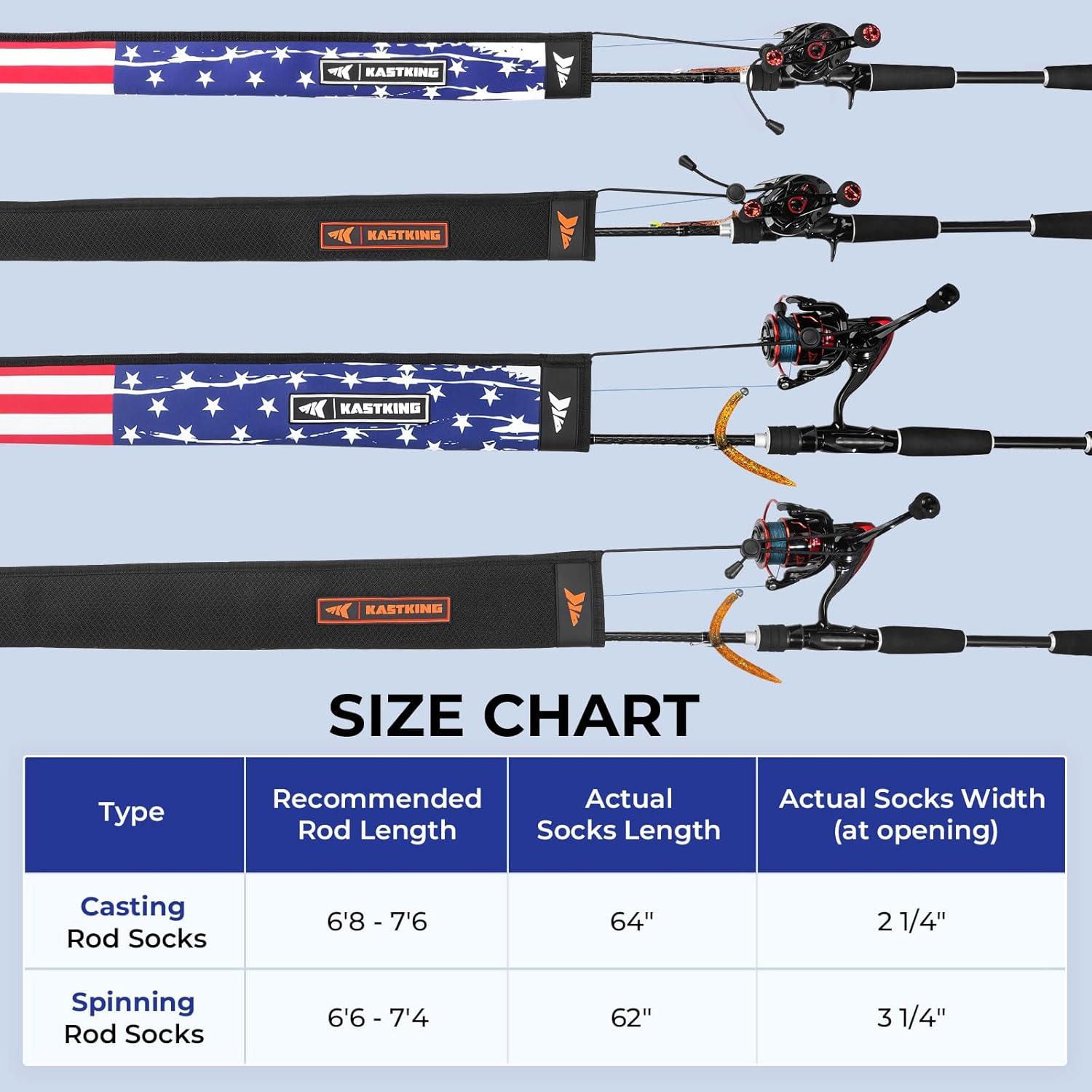 KastKing MeshGuard Rod Socks, Fishing Rod Sleeve, Neoprene Fishing Pole Sleeve, Fishing Rod Covers, Built-in Hanging Loop & Adjustable Lanyard, Fits Casting, Spinning, & Fly Rods(Flag 1 Pcs)