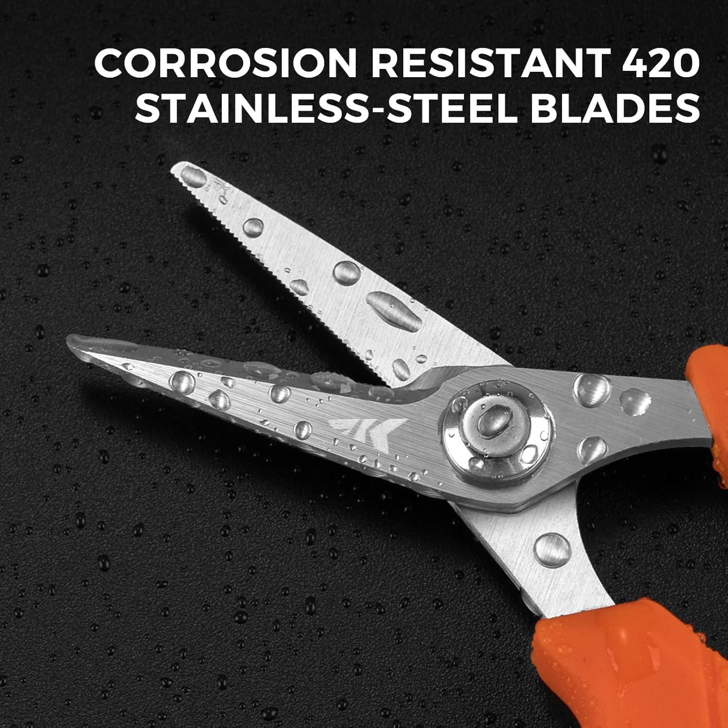 Robust 420 Stainless Steel Blades: Constructed with high-quality 420 stainless steel, these fishing scissors are built to withstand corrosion, providing lasting sharpness and reliable performance in diverse angling environments