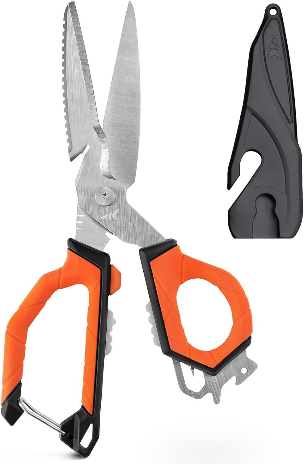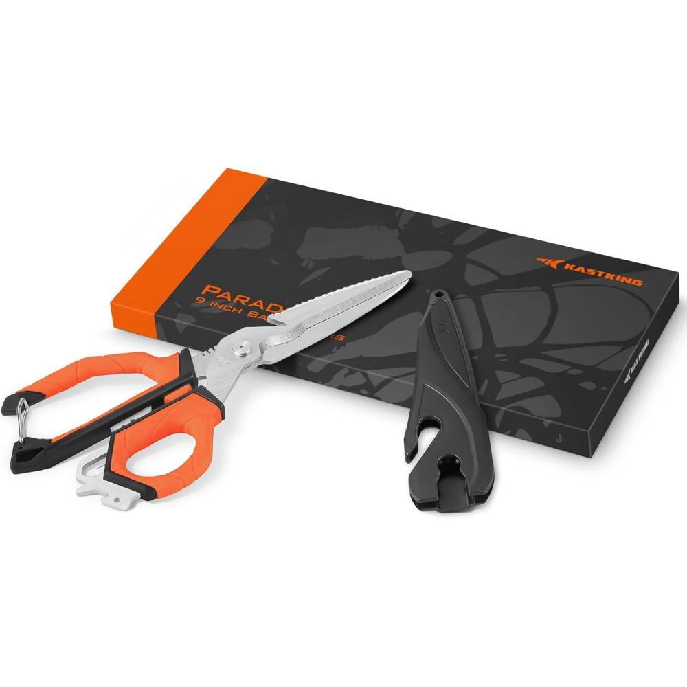 KastKing Paradox 4.5-Inch Fishing Scissors, Stainless Steel Precision Fishing Line Cutters With Non-Slip Grip, Protective Sheath, and Neck Lanyard, Small Scissors for Braided Fishing Line(C: 9" Bait Shears)