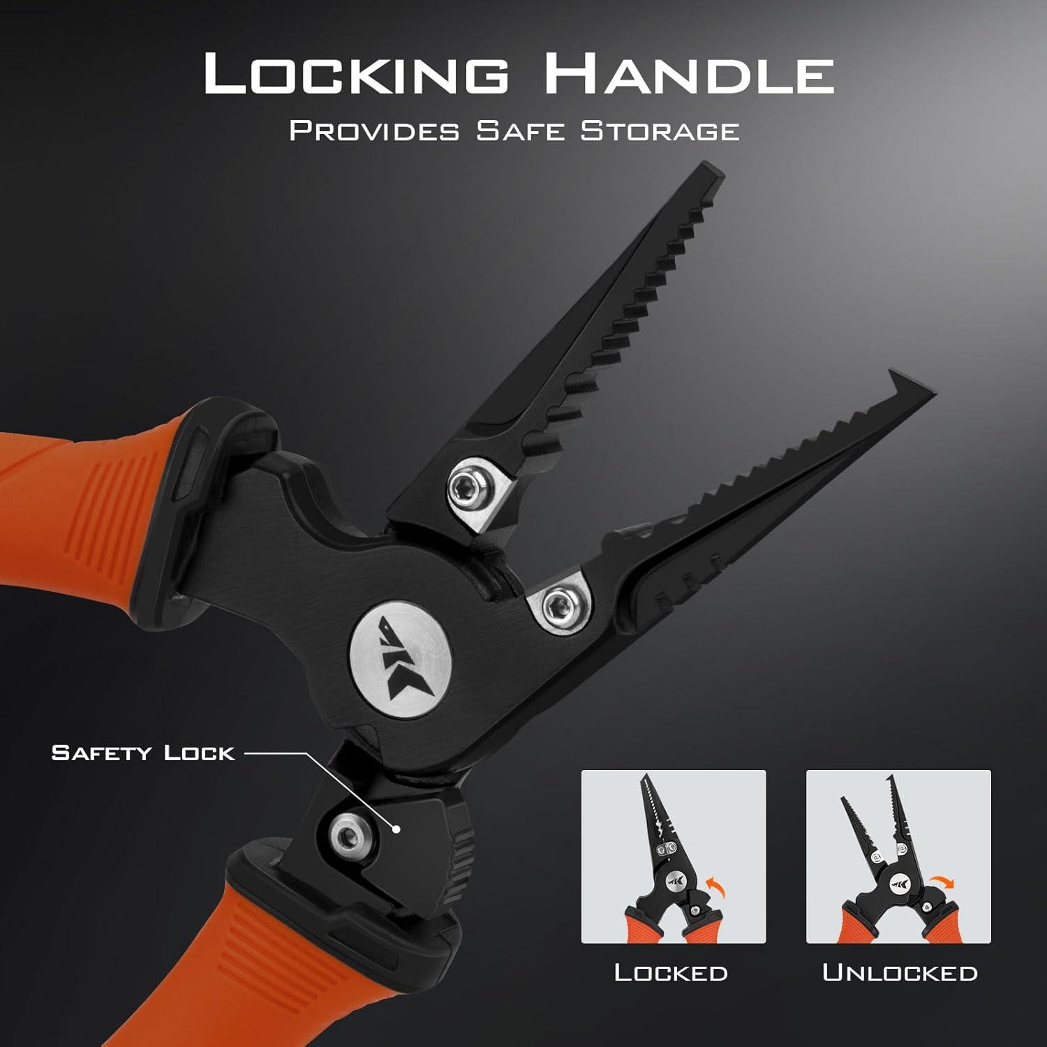 Ergonomic and Comfort Handle: Designed with safety and comfort in mind, the set features ergonomic design and non-slip rubber handles on both tools and a locking handle on the pliers, promising a comfortable, secure grip, and safe storage
