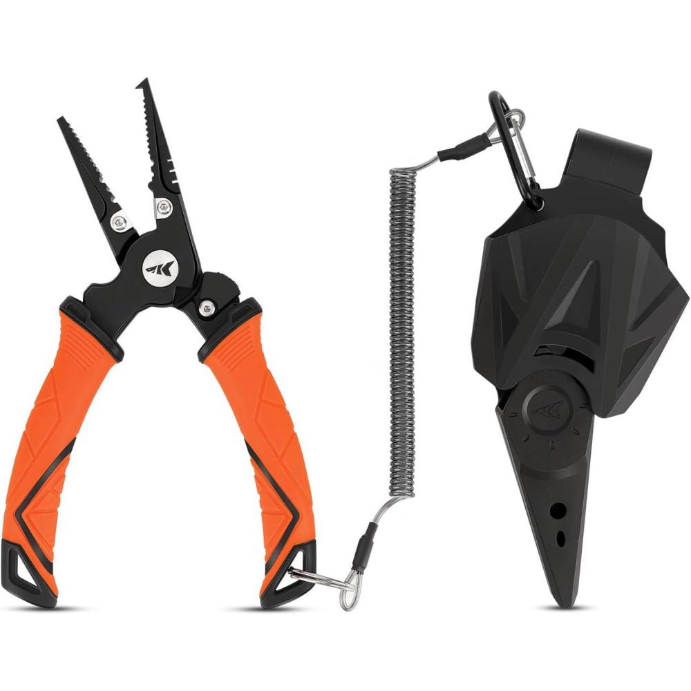 Precision and Control: Benefit from the angle-nosed pliers with features like bait tuning slots and carbide line cutters that handle braided, mono, and fluorocarbon lines effortlessly. The pistol grip with reinforced jaws ensures a secure grip on the fish