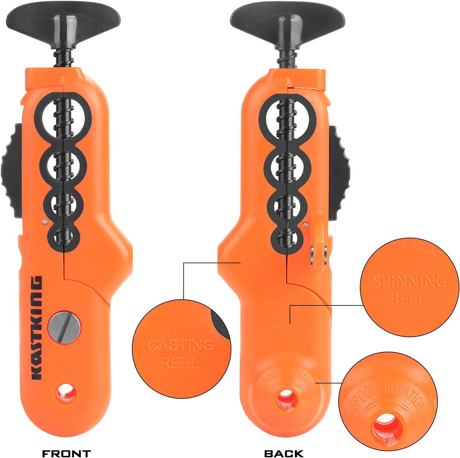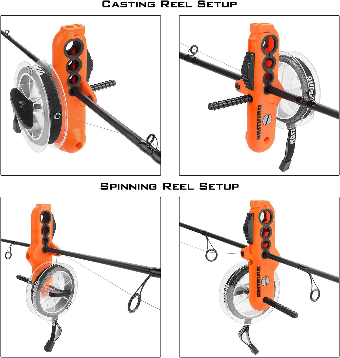 PATENT PENDING LIINE SPOOLING TOOL– The innovative KastKing patent pending line spooler design is simple to use and can spool both spinning reels and baitcasting reels without any line twist. Rubber coated clamp points firmly grip nearly any size rod without damaging your fishing rod and tension bands can be adjusted to apply the ideal line tension during the spooling process. Made with non-rusting ABS materials.