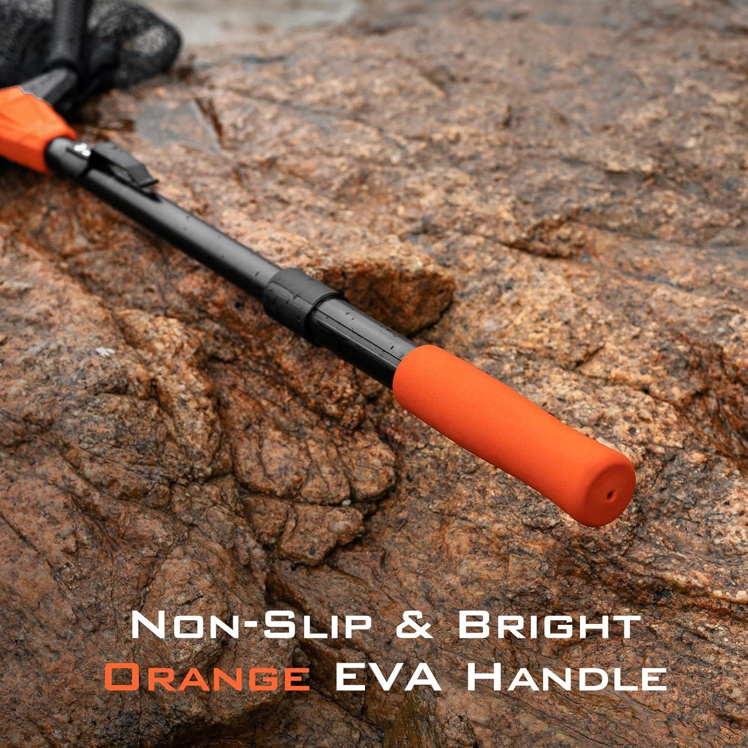 Bright Color EVA Handle:The bright orange EVA foam handle allows you quickly find the landing net in just a few seconds, even in low light conditions. And this comfortable EVA handle provides a firm handgrip and makes the handle much easier to hold without slipping when your hand is wet or in cold weather.