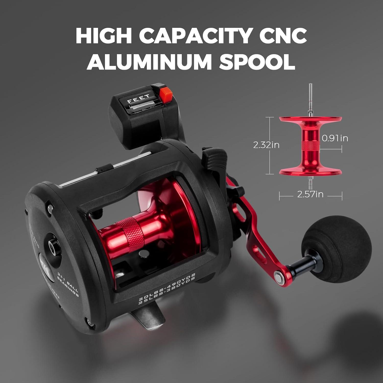 LINE COUNTER TROLLING REEL – New from KastKing is the ReKon Line Counter Trolling Reel. Available in 3 sizes, ReKon conventional reels will be perfect for Salmon, Steelhead, Trout, Kokanee, Walleye, Lake Trout, saltwater species, and so much more. Both feature an exceptional, accurate mechanical line counter so that you can consistently keep your bait in the exact zone that is producing fish over and over.