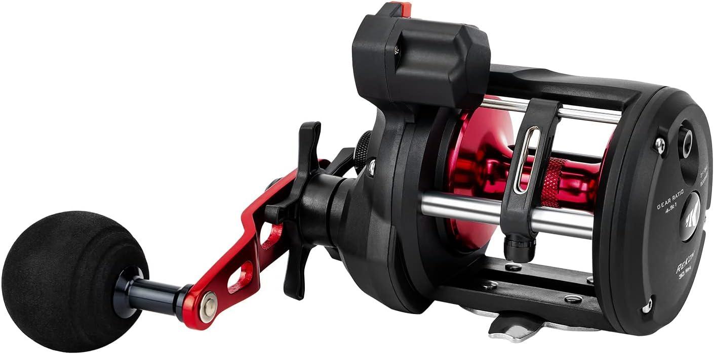 AMAZING DRAG POWER & FEATURES – The ReKon Line Counter round casting reels use a smooth, carbon disc drag that delivers 30 lbs of fish stopping power (25lb for size 10). Both size reels have a line clicker function that makes releasing planer boards simple and easy. You can use that feature as a strike detection system while trolling. Gear ratio is 5.1:1 on the size 10, 5.3:1 on the size 20 and 4.5:1 on the size 30.
