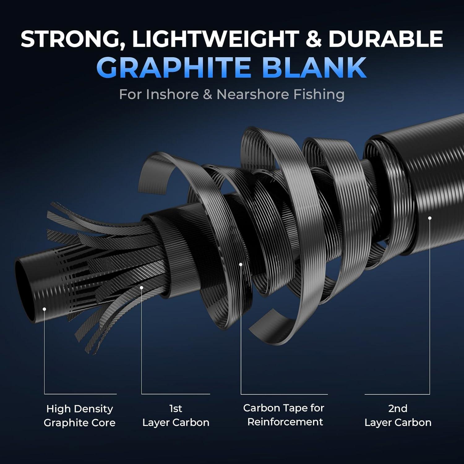 Graphite Blank for Saltwater Fishing – Crafted with a durable graphite blank, the KastKing ReKon saltwater spinning reel is engineered to endure harsh conditions and conquer powerful saltwater species, making the saltwater fishing rod and reel combo an ideal choice for targeting striped bass, redfish, king mackerel, and Atlantic bluefin tuna on any saltwater adventure.