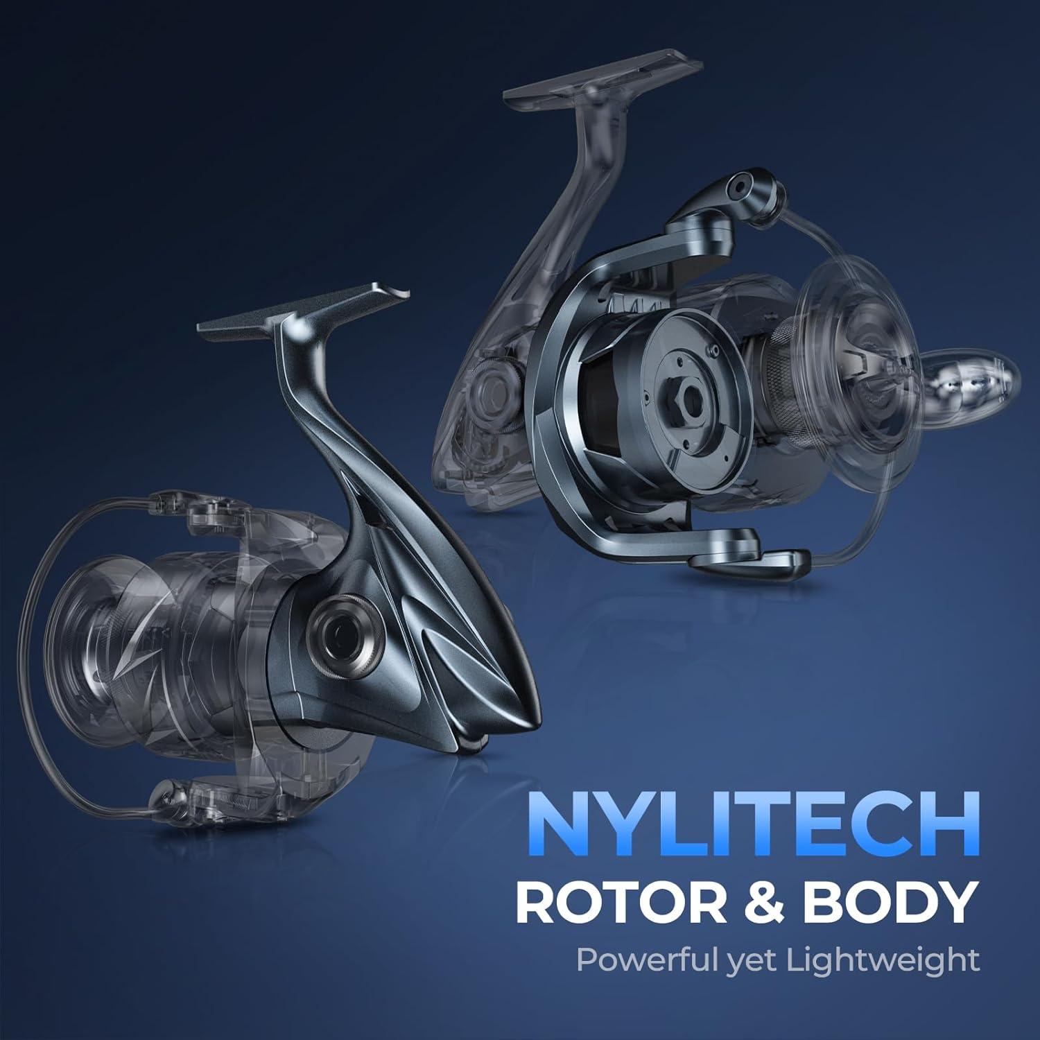 Lightweight Yet Durable Components – The KastKing ReKon Saltwater Rod & Reel Combo features a spinning reel built with a NyliTech frame and rotor for strength and lightweight durability. The lightweight one-piece bail is visually appealing and resistant to tangling, ensuring reliable performance even in challenging conditions.