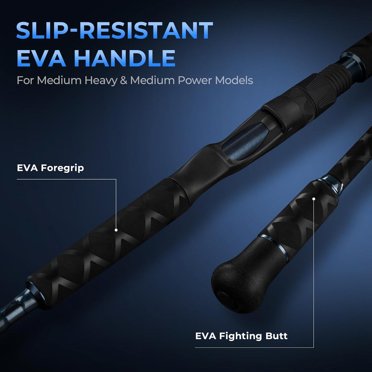 Lightweight Yet Durable Components – The KastKing ReKon Saltwater Rod & Reel Combo features a spinning reel built with a NyliTech frame and rotor for strength and lightweight durability. The lightweight one-piece bail is visually appealing and resistant to tangling, ensuring reliable performance even in challenging conditions.