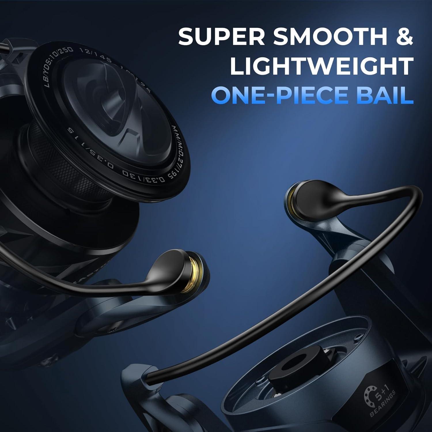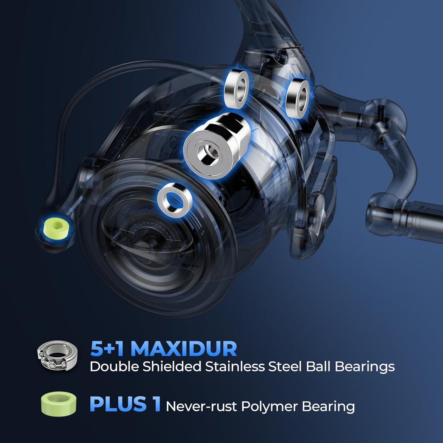 Smooth & Rust-Free Bearing System – The KastKing ReKon Saltwater Fishing Rod and Reel Combo is equipped with 5+1 double shielded, stainless steel ball bearings plus 1 never-rust polymer bearing in the bail, the KastKing ReKon saltwater spinning reel delivers smooth, reliable performance and long-lasting durability, even in harsh saltwater conditions.