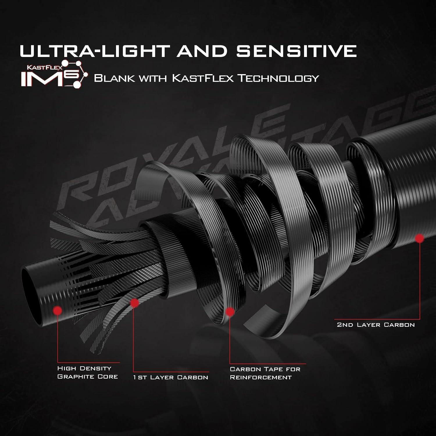 Ultra-Light and Sensitive: Royale Advantage fishing rods are made from strong and sensitive IM6 graphite blanks and KastFlex technology. The blanks are designed to be lightweight and responsive, giving you the sensitivity you need to detect even the slightest bite.