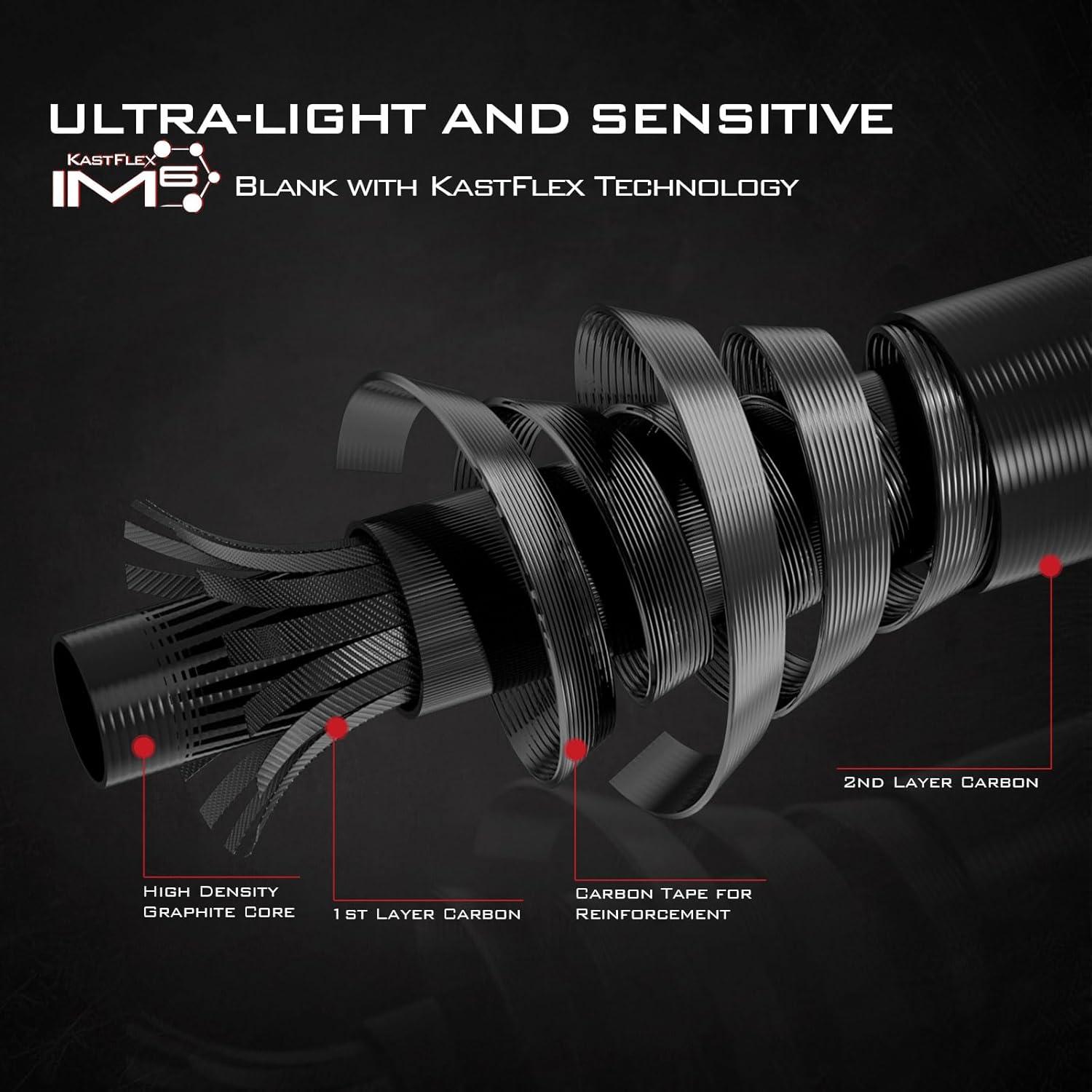 Ultra-Light and Sensitive: Royale Advantage fishing rods are made from strong and sensitive IM6 graphite blanks and KastFlex technology. The blanks are designed to be lightweight and responsive, giving you the sensitivity you need to detect even the slightest bite.