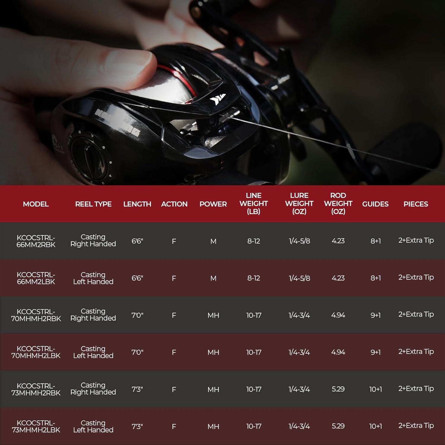 KastKing Royale Legend II Twin Tip Spinning and Casting Combos are simply the best value in fishing tackle today. These are true performance carbon fiber fishing rods in several actions and lengths. KastKing uses incredibly light, sensitive, and strong IM6 graphite rod blanks and premium components to build a fishing rod that looks as good as it performs. The Royale Legend II Rod & Reel Combos are designed for both comfort and high performance, available in various combinations of power, action, and length, catering to every freshwater fishing need, whether it's bass, trout, walleye, or catfish. Crafted with IM6 Graphite Blanks and KastFlex technology, our rods are exceptionally lightweight and sensitive, ensuring you detect even the lightest bite. Plus, each rod includes an extra backup tip section for uninterrupted fishing, even if one tip is damaged. The KastKing PTS (Power Transition System) adds an extra layer of strength and durability to the rod's blank, providing smooth transitions and improved casting distance and allowing you to fish as with one-piece rod. Stainless-Steel guides and Titanium Oxide Ceramic Rings minimize friction, enabling effortless casts and dependable performance. Custom KastKing Reel Seats, EVA handle, fighting butt, and foregrip offer a comfortable and secure hold, allowing anglers to fish for hours without fatigue. The KastKing Royale Legend II Spinning Reel features 5+1 MaxiDur high-quality double-shielded stainless steel ball bearings, precision machined high-alloy and brass gears, up to 22 lbs of carbon fiber drag, a zero-rust graphite frame and body, aerodynamic carbon rotor, and stainless-steel hardware. Meanwhile, the KastKing Royale Legend II Baitcasting Reel boasts a 7.2:1 high-speed gear ratio, 5+1 MaxiDur double-shielded stainless steel ball bearings, Hamai precision machined brass gears, and an Cross-Fire 8 magnet braking system with ten levels of brake adjustment, making it efficient with minimal effort.