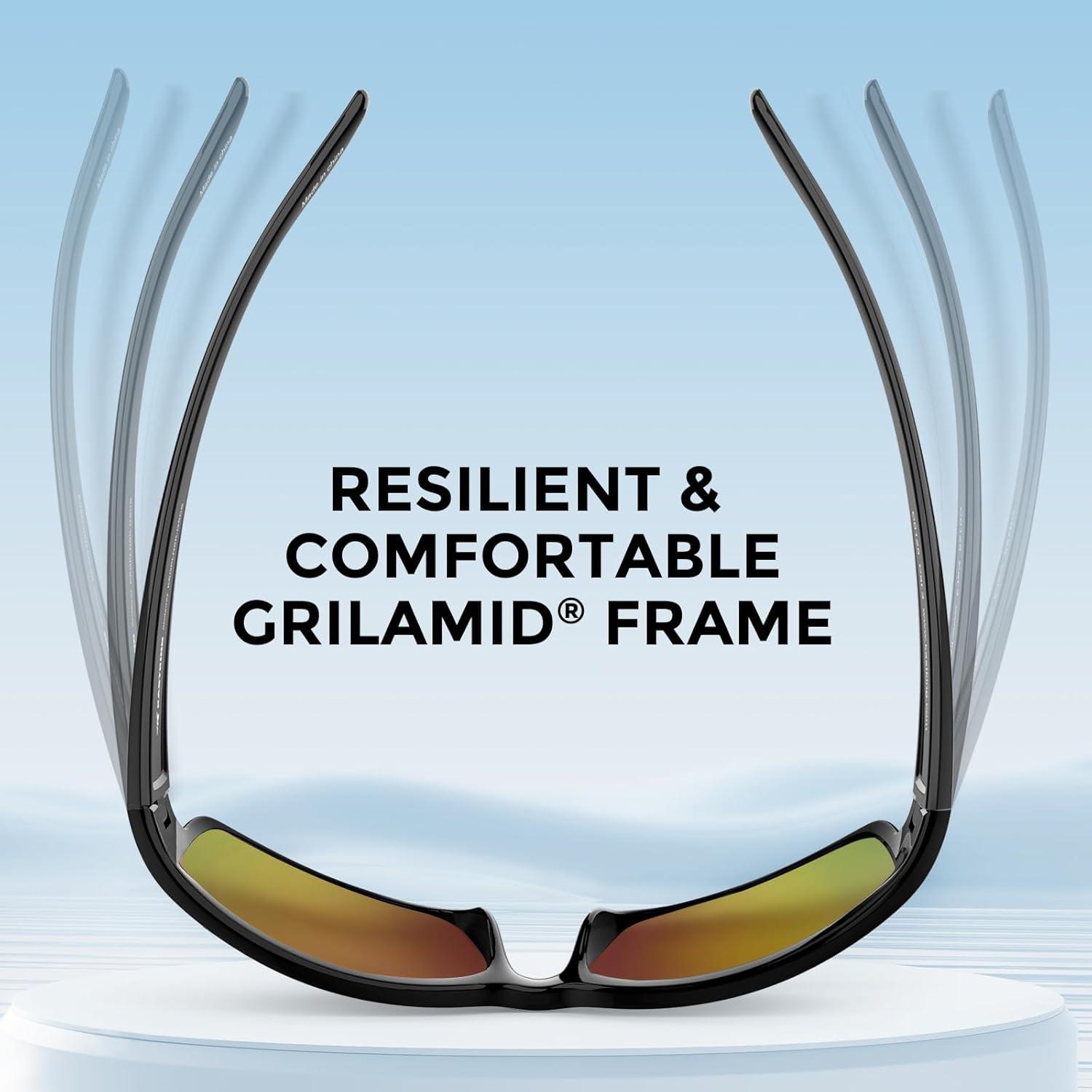 SUPERIOR FRAMES – Made from the same Grilamid material commonly used by the military and in medical applications, our frames are lightweight, extremely flexible, and heat and UV resistant. Grilamid frames are well known for their strength, lightweight comfort, shape integrity, and impact resistance. This ultra-lightweight and malleable material translates to a very comfortable fit.