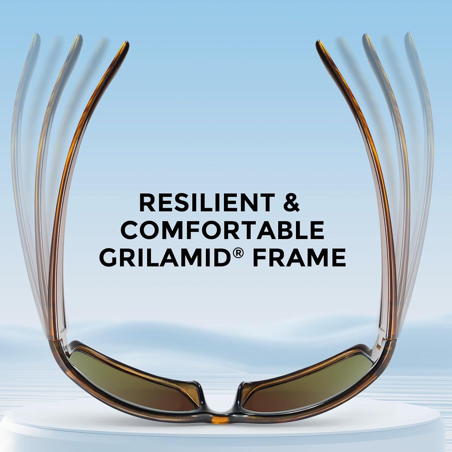 SUPERIOR FRAMES – Made from the same Grilamid material commonly used by the military and in medical applications, our frames are lightweight, extremely flexible, and heat and UV resistant. Grilamid frames are well known for their strength, lightweight comfort, shape integrity, and impact resistance. This ultra-lightweight and malleable material translates to a very comfortable fit.