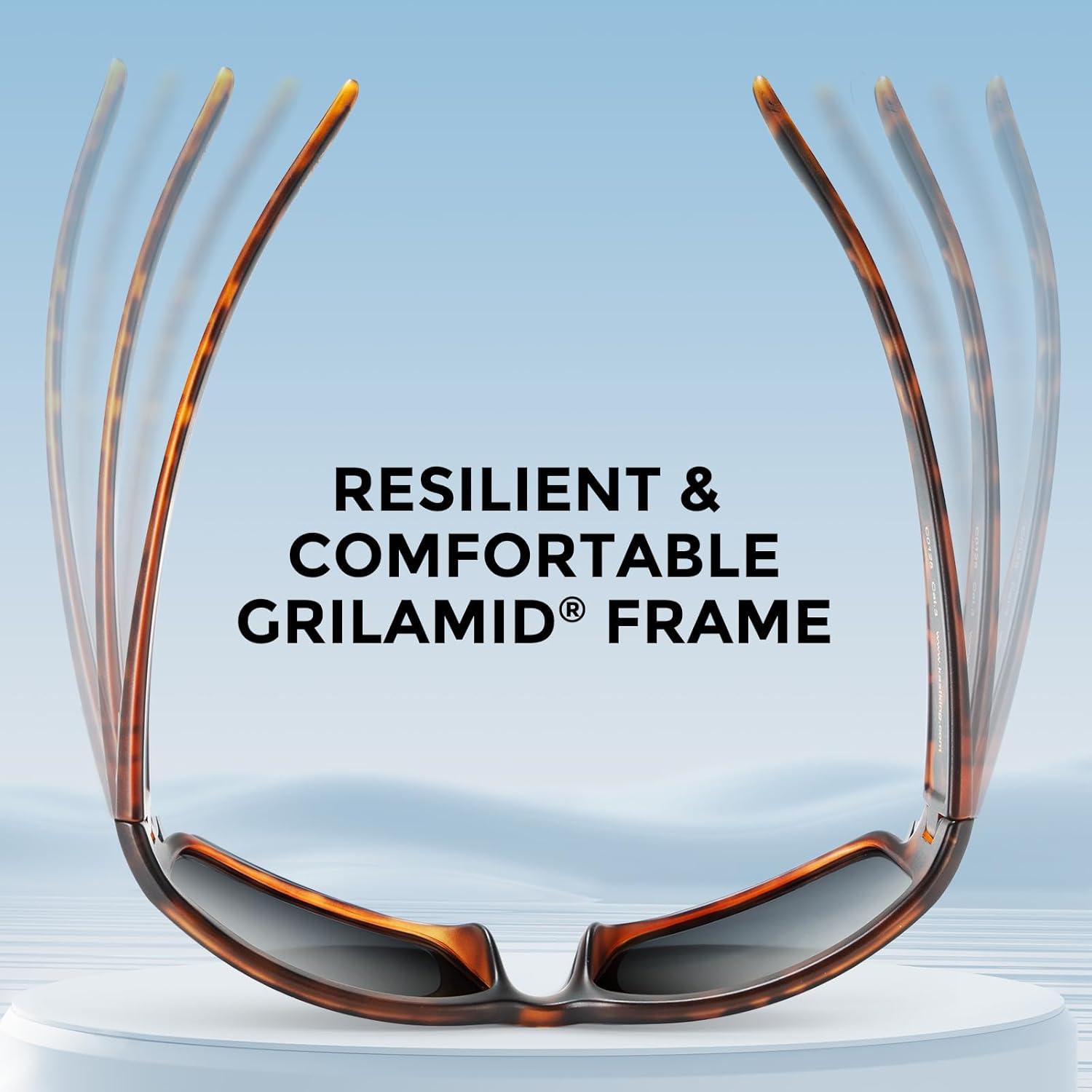 KEY FEATURES – Polarized lenses reduce glare – Impact resistant TAC lenses protect your eyes from flying objects – Block 100% of the harmful UVA and UVB rays – Lightweight, durable, and comfortable Grilamid frames