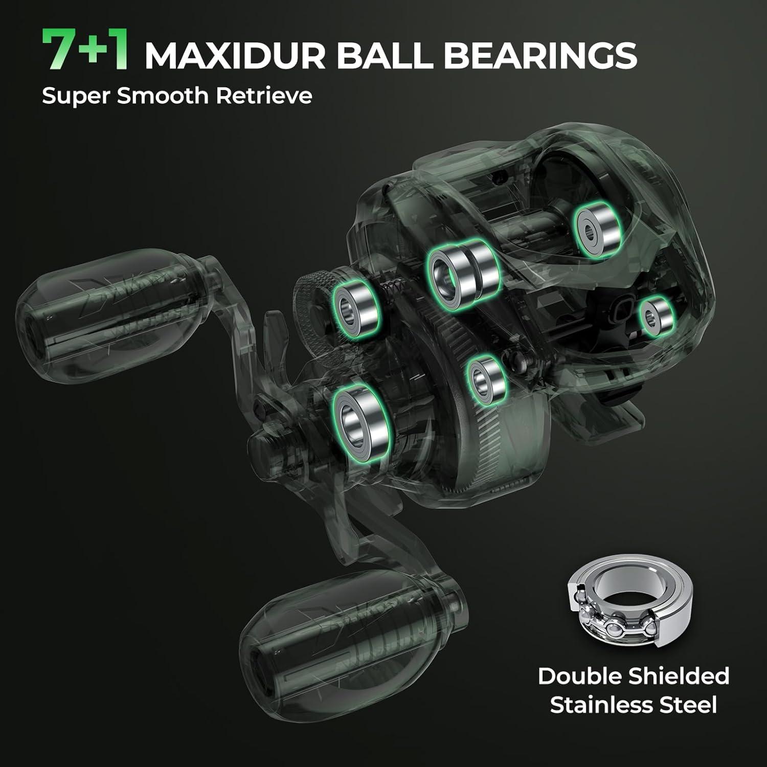 Refined Casting Reel – The KastKing Spartacus II casting reel is built for ultra-smooth casting and retrieval with its 7+1 MaxiDur bearing system. With 17.6 pounds max drag, it handles big catches with ease, while the 7.2:1 gear ratio provides faster line retrieval. Constructed with aerospace aluminum main gears and brass pinion gears, making the KastKing fishing rod and reel combo an excellent choice for anglers in all fishing conditions.