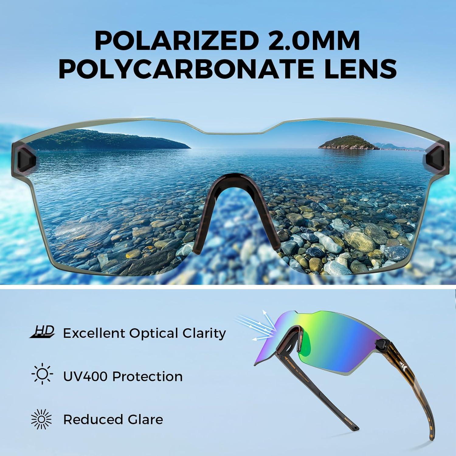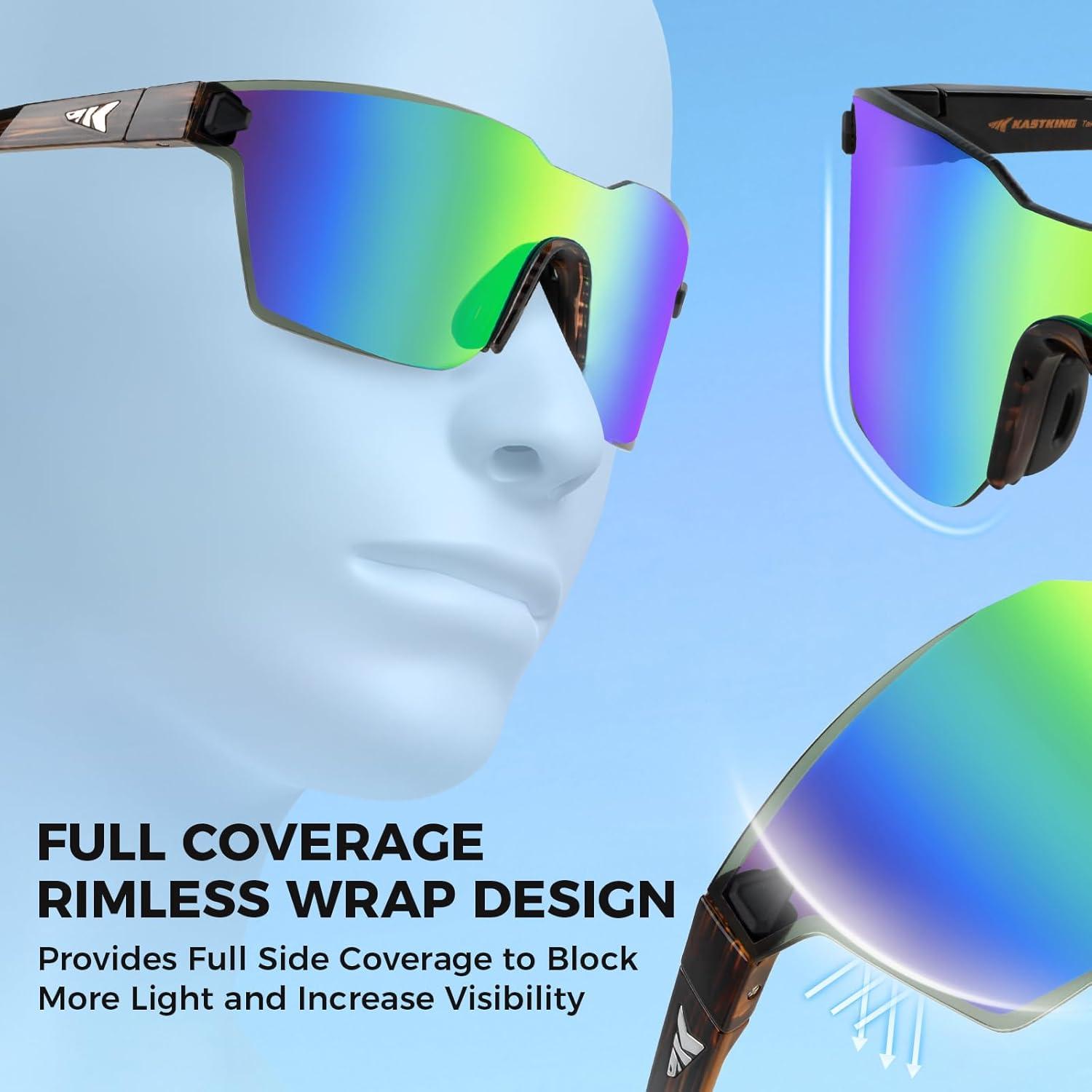 KastKing Tarkio Polarized Fishing Sunglasses, Large Single PC Lenses, Rimless Wrap Design, UV400 Protection Sports Sunglasses(E: Gloss Tal Dark Olive Frame Gold Mirror)