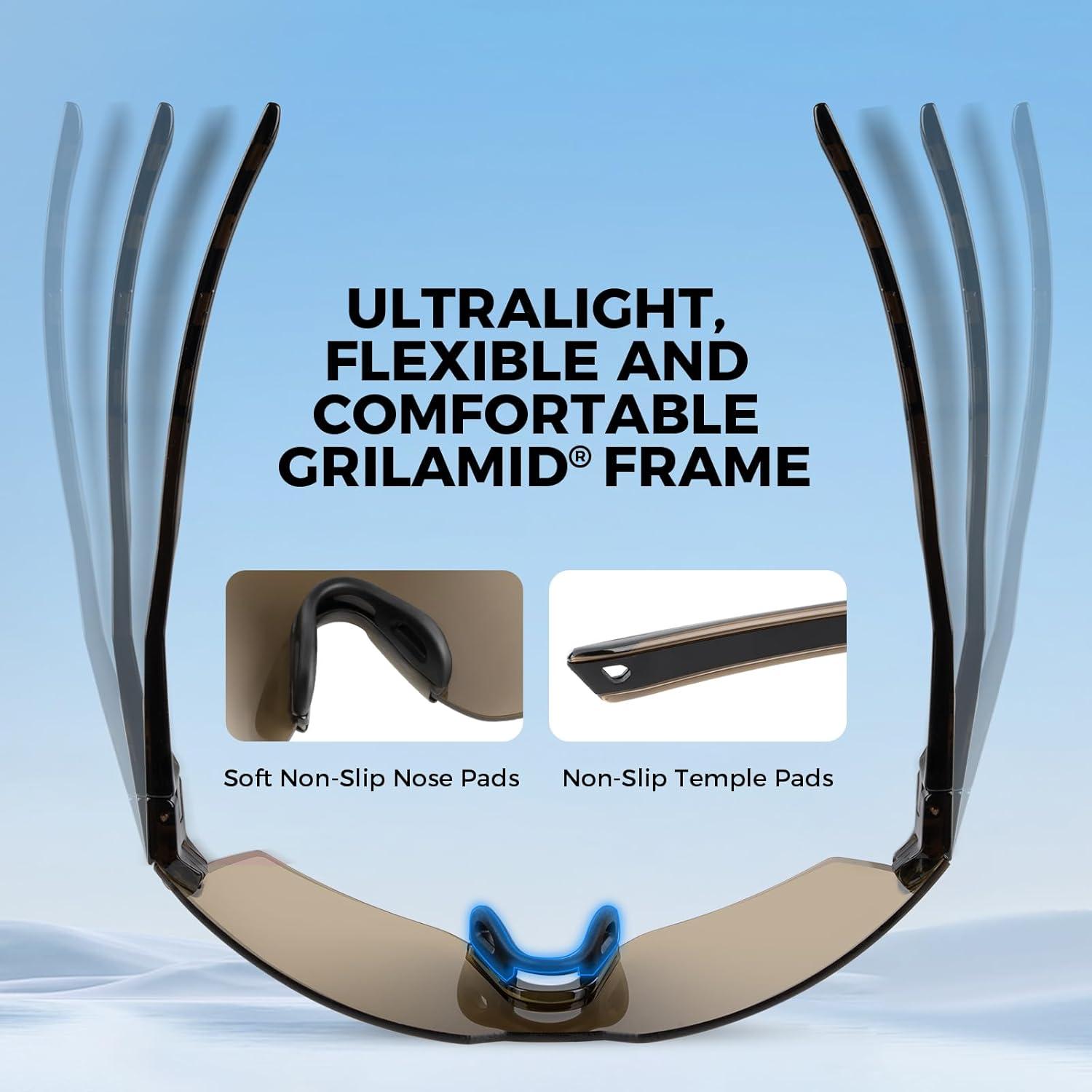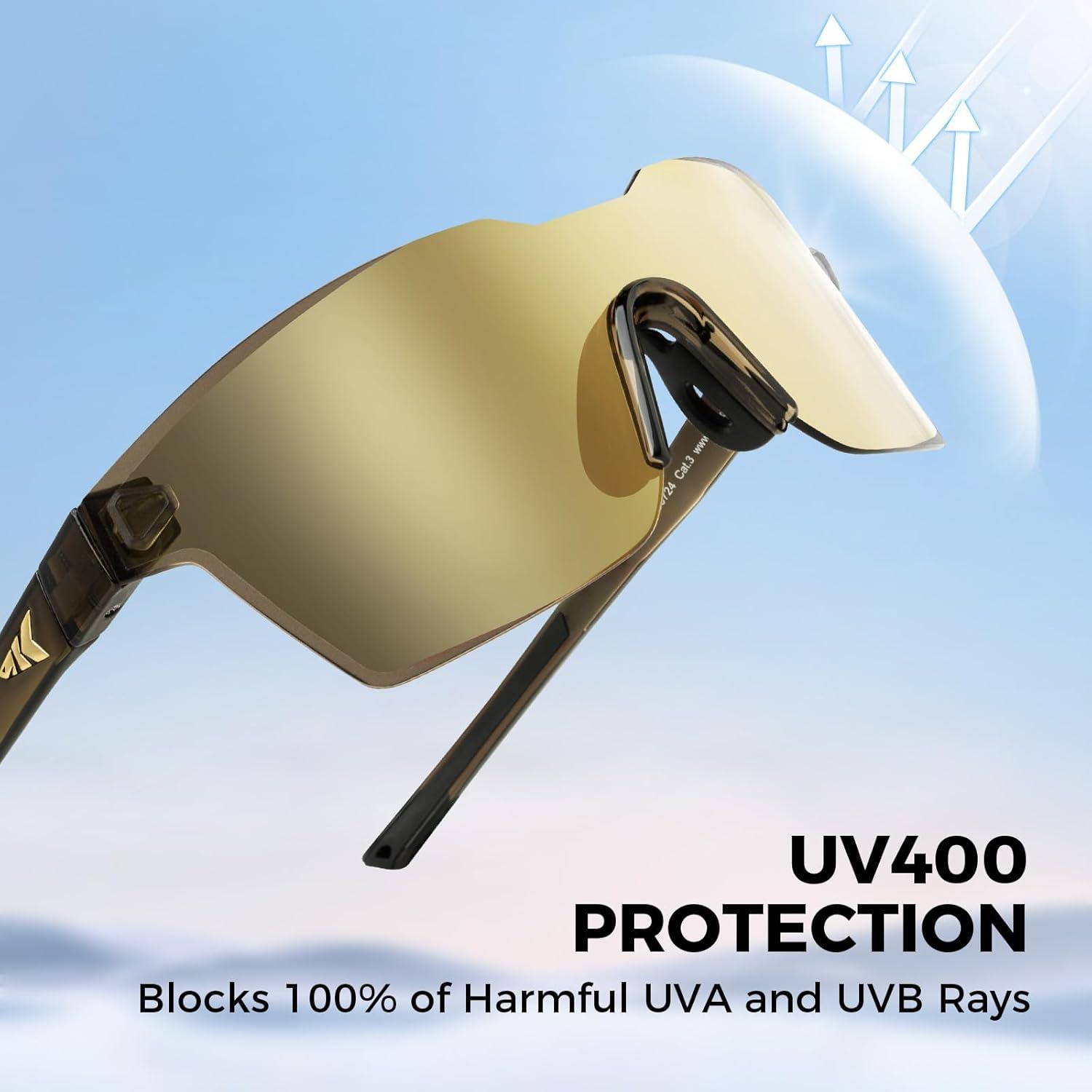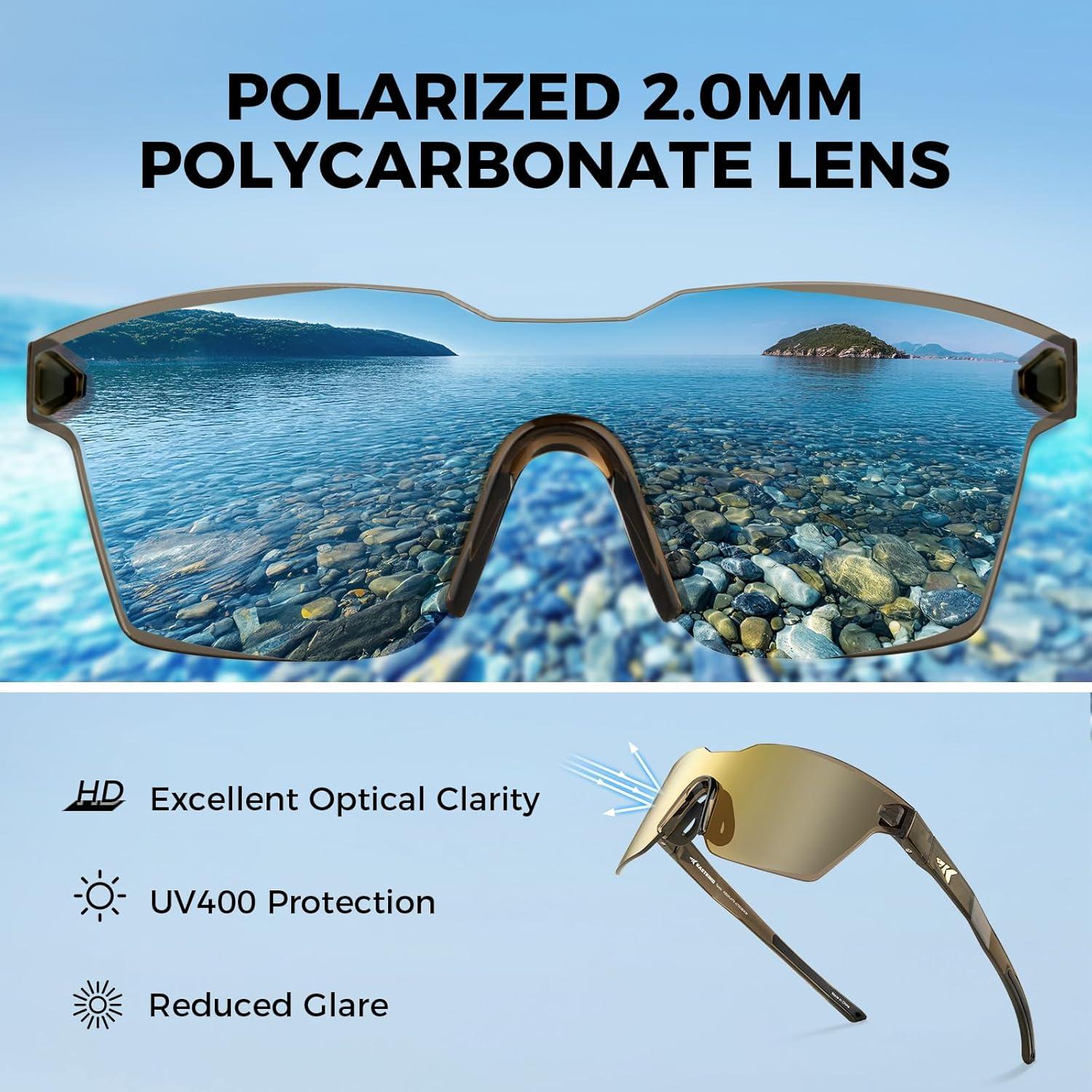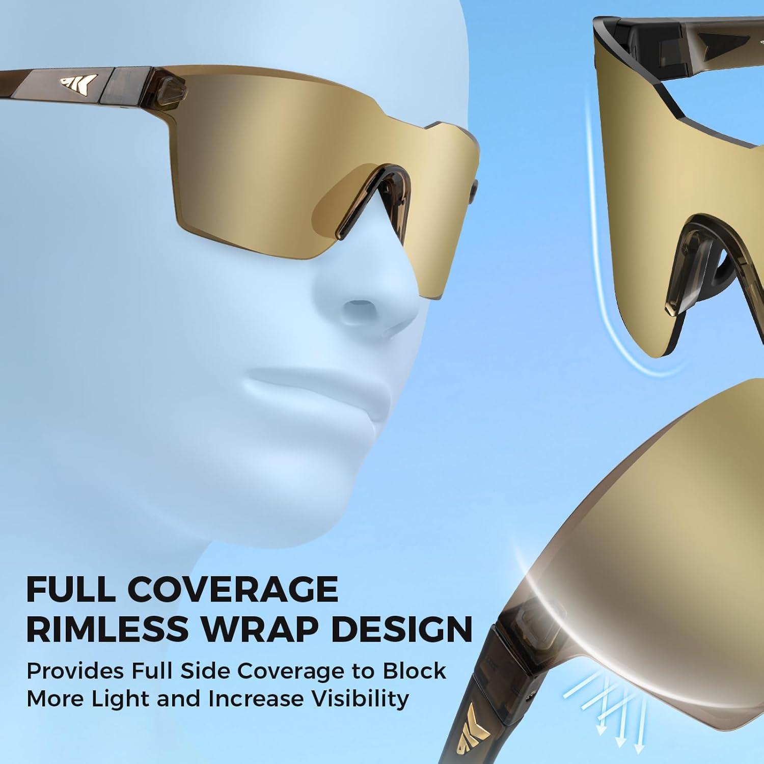 KastKing Tarkio Polarized Fishing Sunglasses, Large Single PC Lenses, Rimless Wrap Design, UV400 Protection Sports Sunglasses(E: Gloss Tal Dark Olive Frame Gold Mirror)