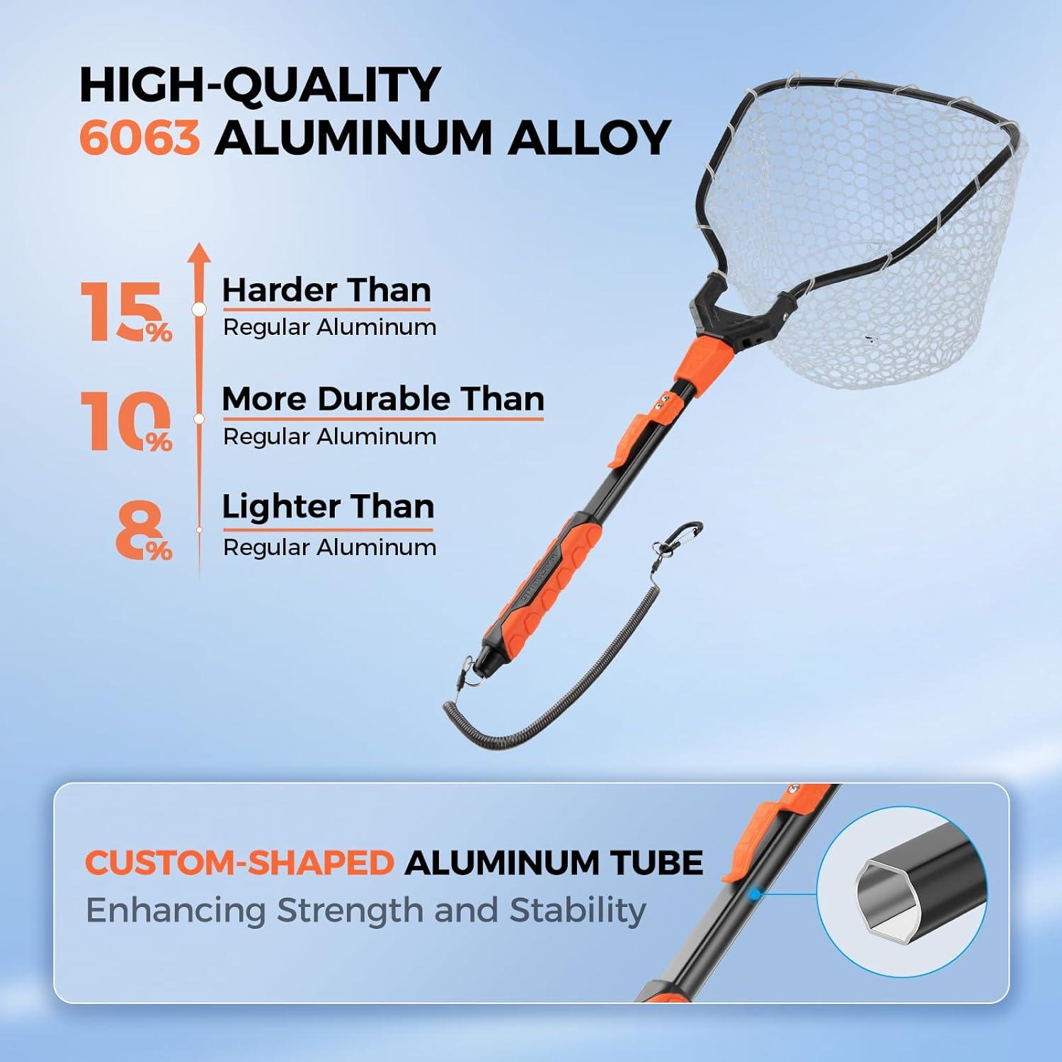 Durable & Strong Handle: The KastKing Titanet landing net features a high-quality 6063 aluminum alloy handle with a custom-engineered tube profile for enhanced strength. A durable molded locking head ensures a secure and reliable hold when landing fish.