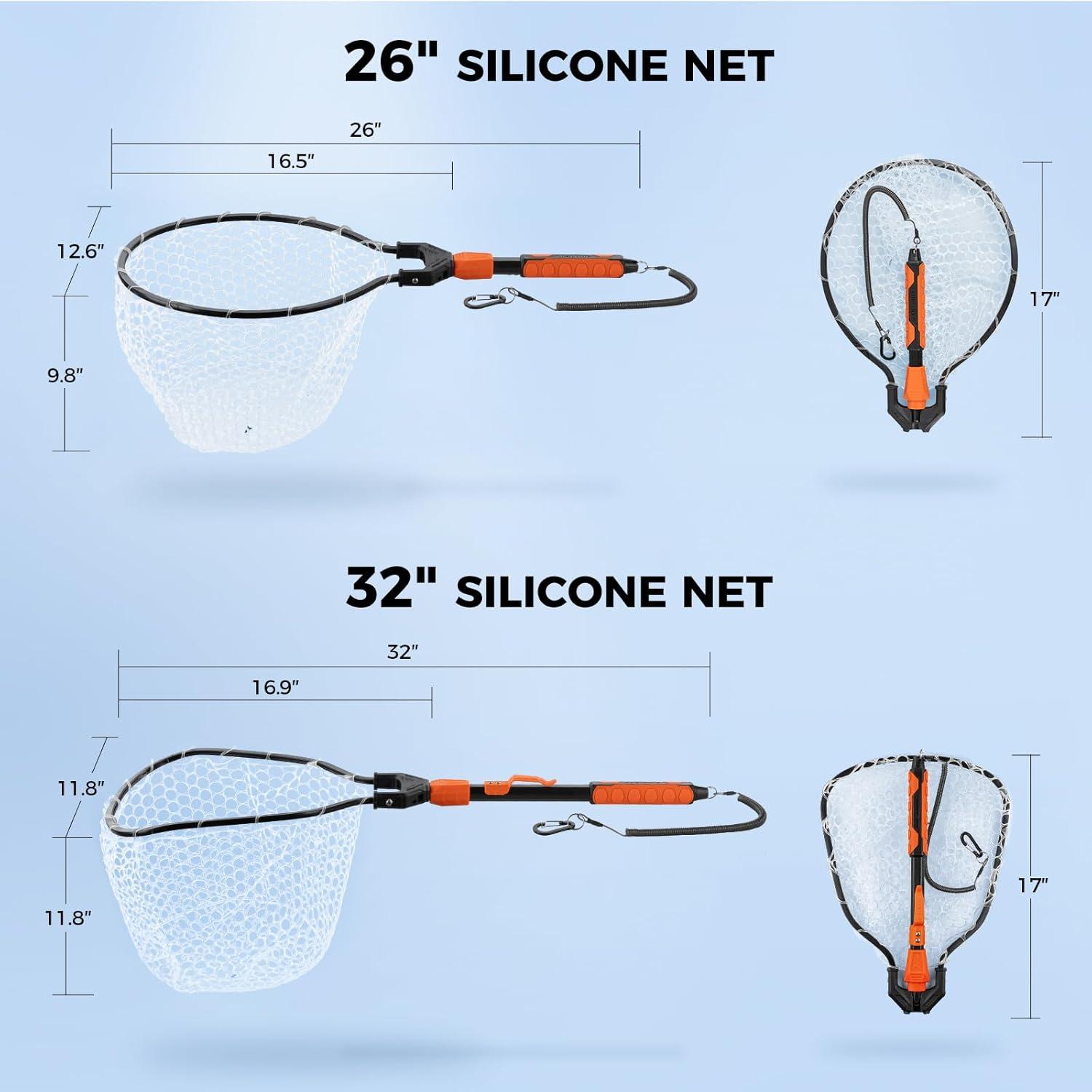 KastKing Titanet Fishing Net, Durable Aluminum Handle, Non-Slip Hi-vis Grip, Compact Storage Bag & Lanyard, Ideal for Kayak & Wading Fishing, Two Net Options(Silicone Net - 32" Total Length (Fixed Handle))