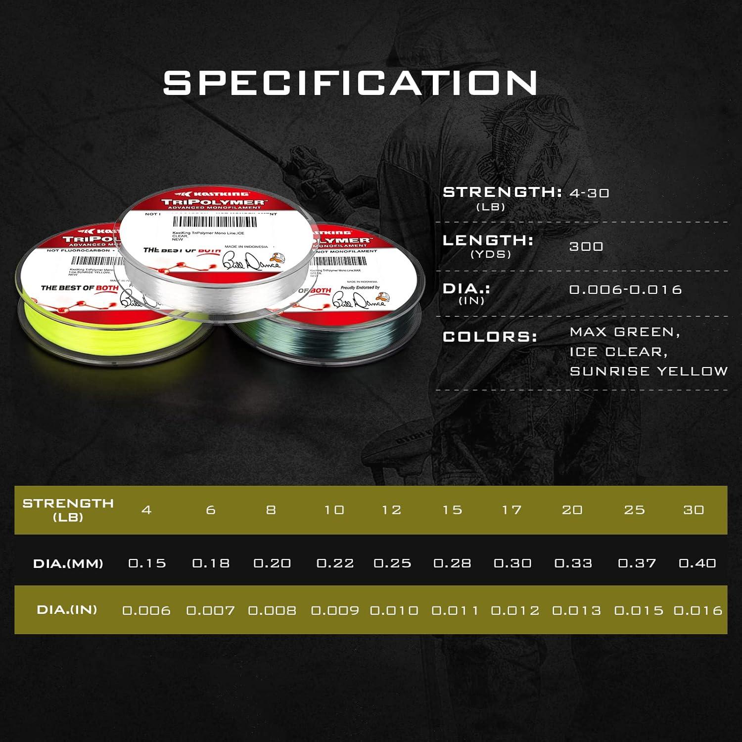 LOW LIGHT REFRACTION – TriPolymer Advanced Monofilament uses 3-layers of 100% Nylon polymer to create low light refraction properties very similar to Fluorocarbon. Fish won’t see the line underwater.