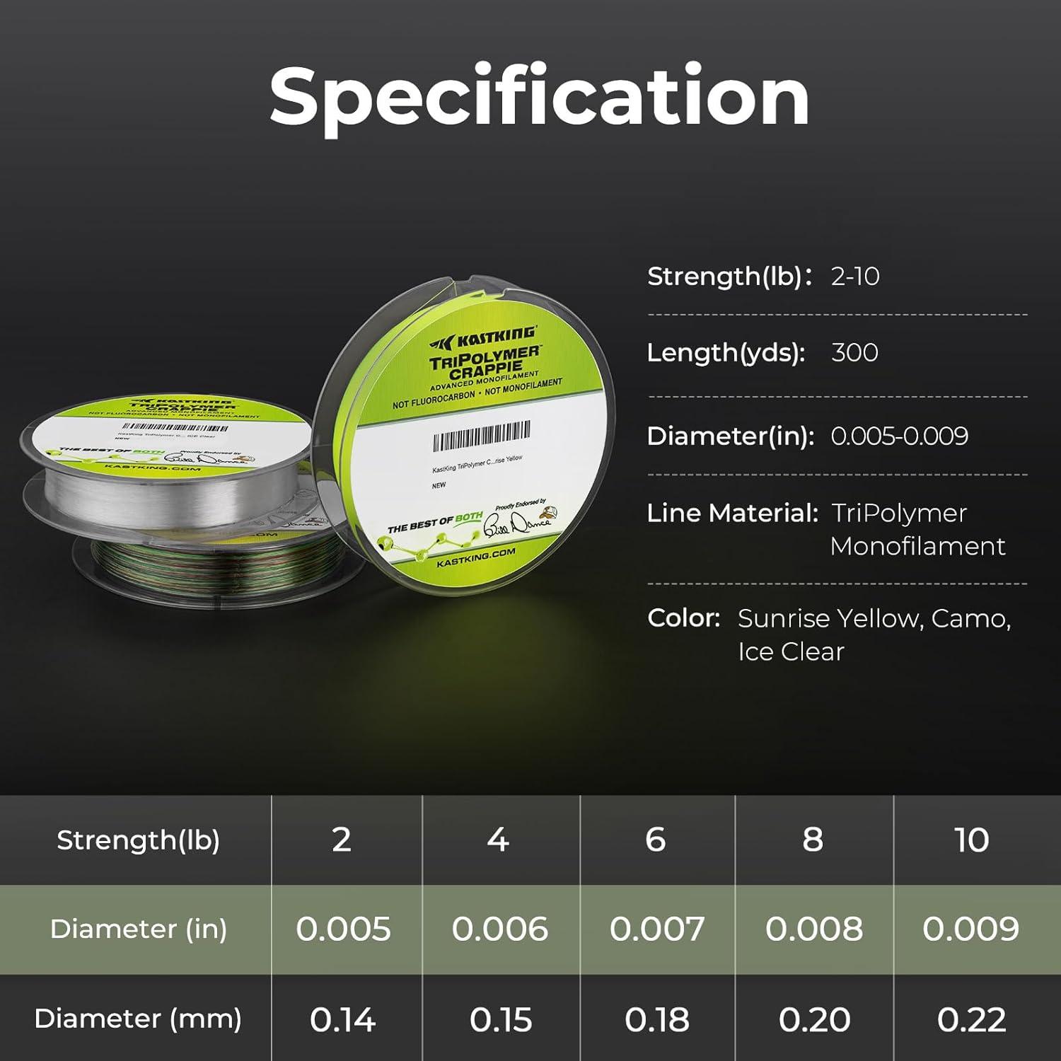 KastKing TriPolymer Crappie Advanced Monofilament Fishing Line, Higher Strength, Super Smooth, Low Light Refraction, Tri-Extrusion Advanced Mono Fishing line, Highly Abrasion Resistant(CAMO)