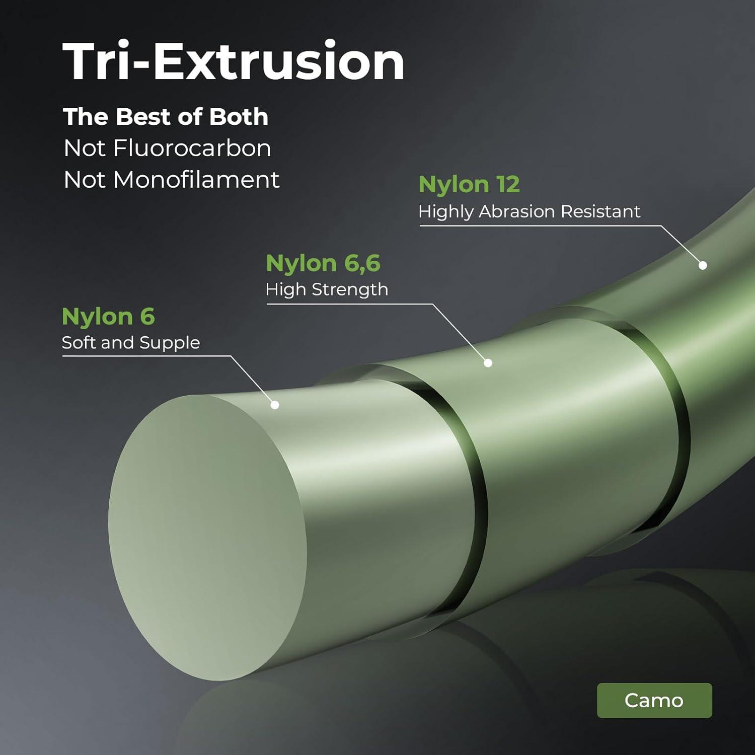 Next Generation Tri-Extrusion Advanced Monofilament – TriPolymer Crappie Advanced monofilament fishing line utilizes a proprietary triple cross head extrusion process to incorporate Nylon 6, Nylon 6,6, and Nylon 12 into one advanced crappie catching monofilament.
