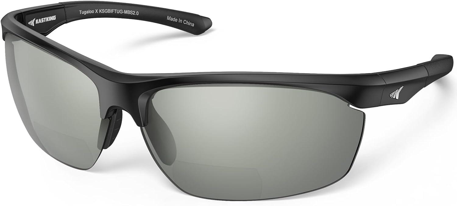 KEY FEATURES: KastKing Tugaloo bifocal lenses for close vision, Polarized lenses reduce glare, Impact-resistant PC lenses, Oleophobic lens coating repels saltwater, oil, and chemicals, Lightweight, durable, and comfortable Grilamid frames, Block 100% of the harmful UVA and UVB rays, Reading powers of x1.5, x2.0, and x2.5.