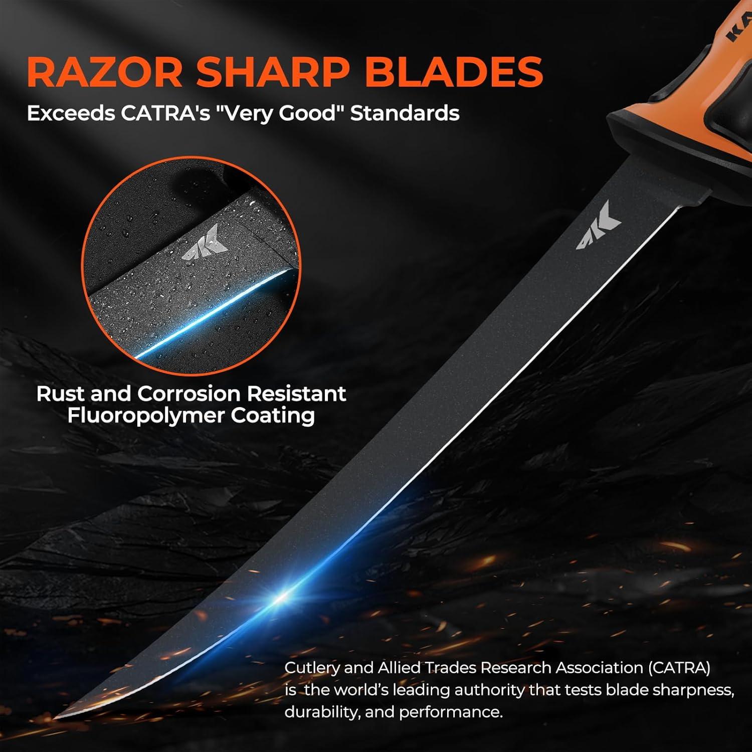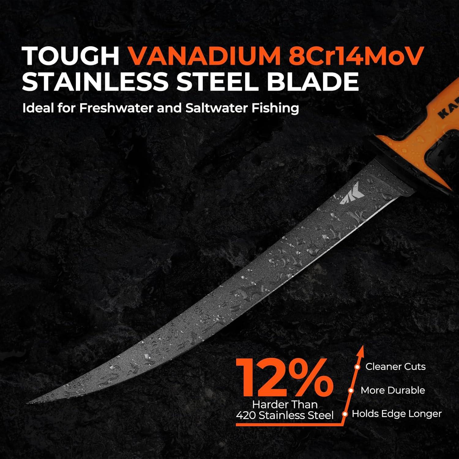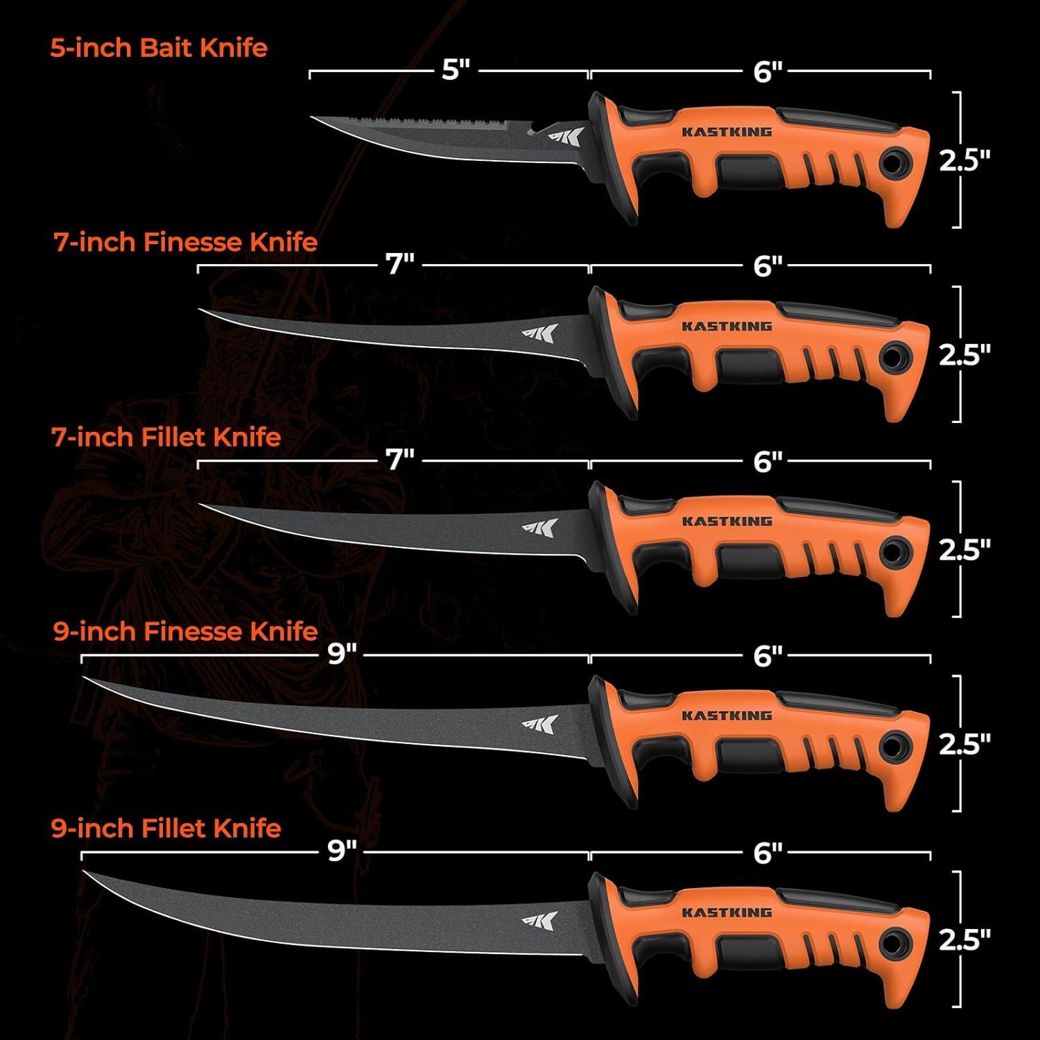 KastKing Ultimate Angler 7" Fillet Knife, Razor Sharp Corrosion-resistant Vanadium Stainless Steel Blade, Fishing Knife Includes Sheath with Sharpener & Line Cutter, EnduraGrip Ergonomic Handle(D:9" Fillet Knife)