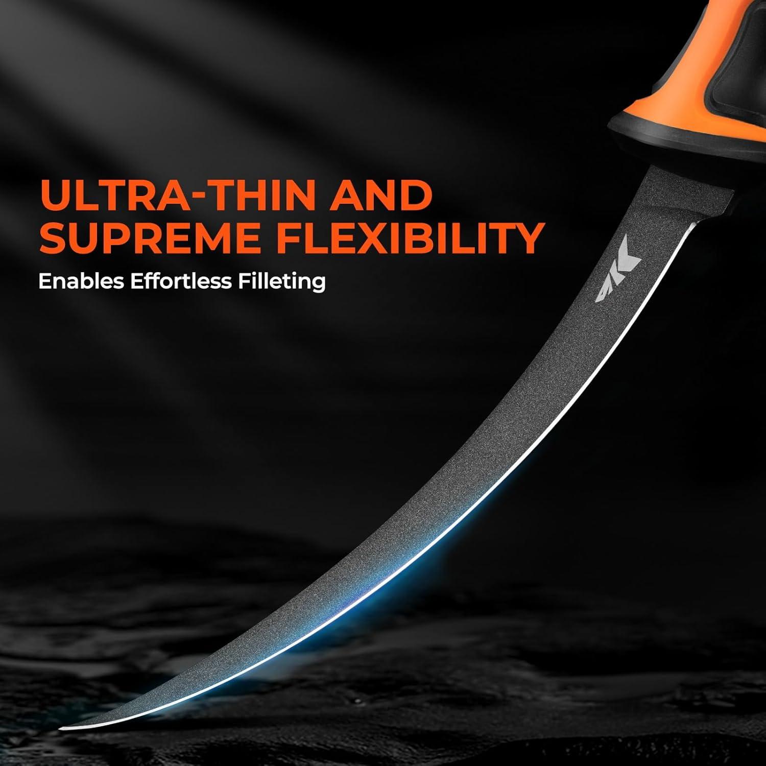 Ultimate Corrosion Resistance: The fillet knife’s blade is coated with fluoropolymer that provides superior resistance to rust and corrosion, a necessity in any marine environment. This protective coating has proven its durability in a demanding salt spray test