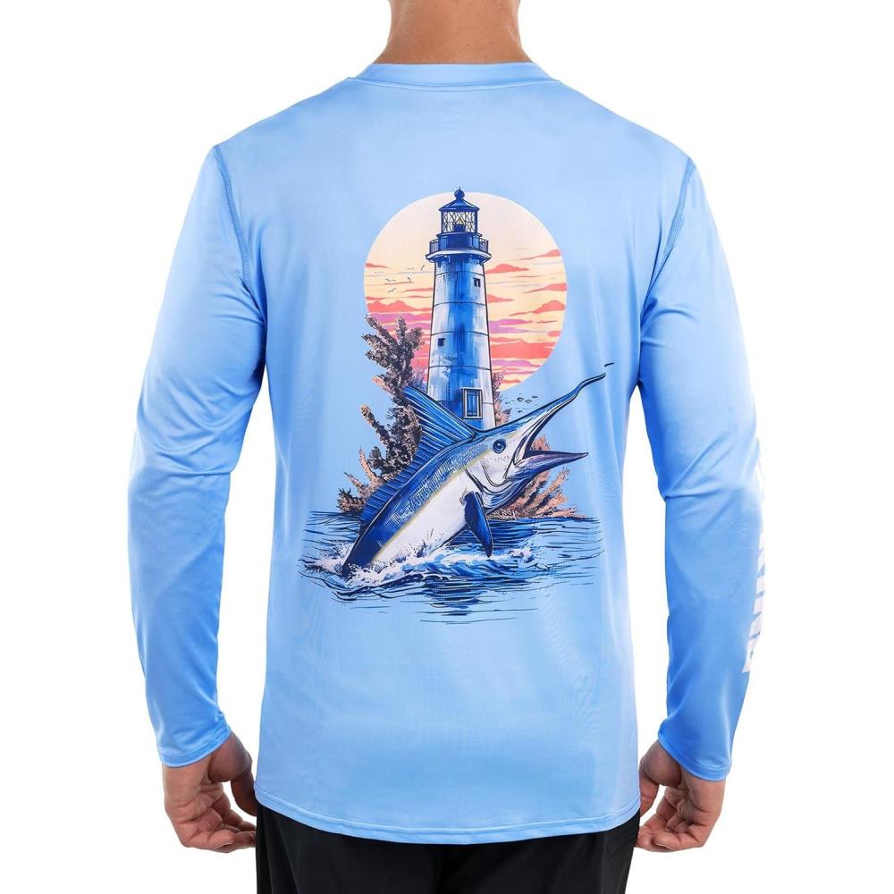 KastKing UPF 50 Fishing Shirts for Men, Long Sleeve Fishing Hiking Shirt, Breathable Moisture Wicking, Sun Shirts for Men(L:chambray Blue)