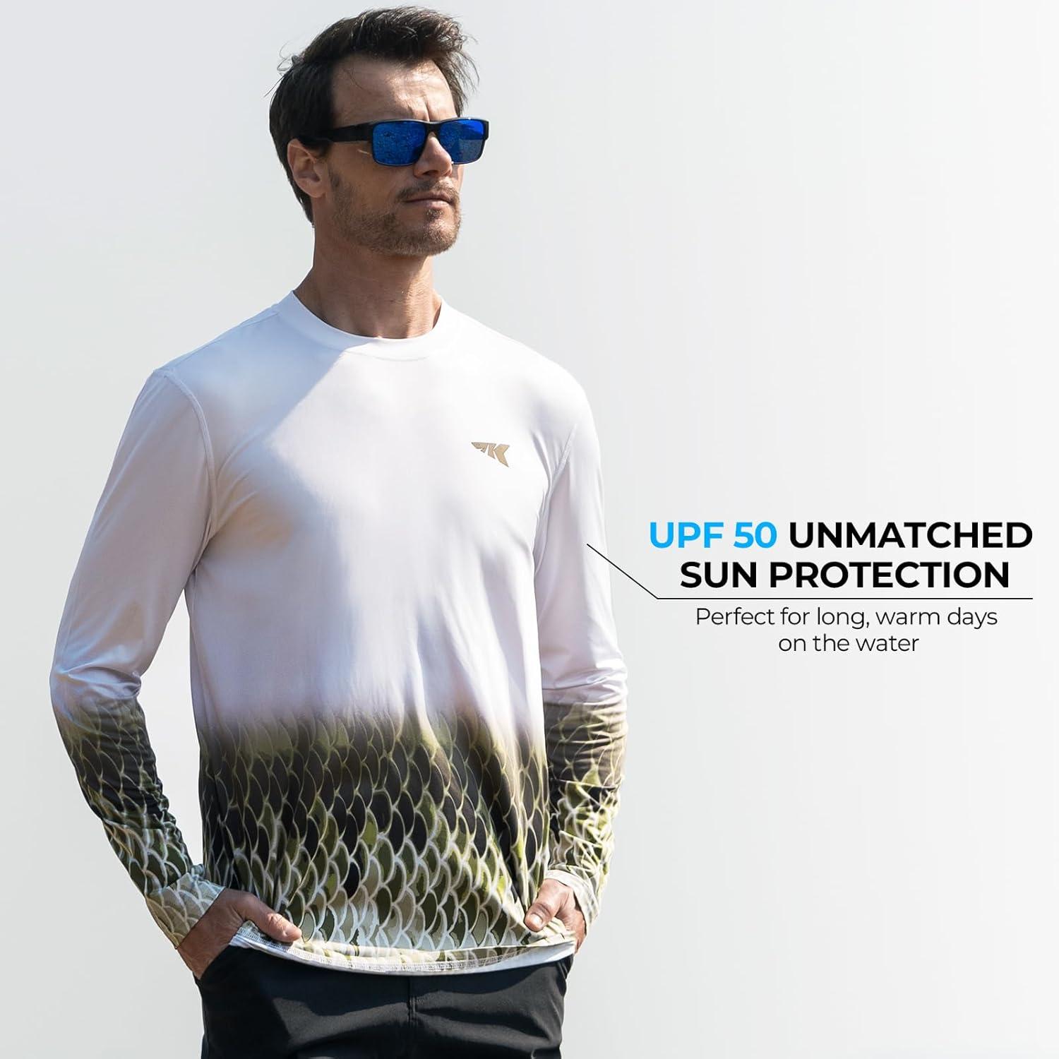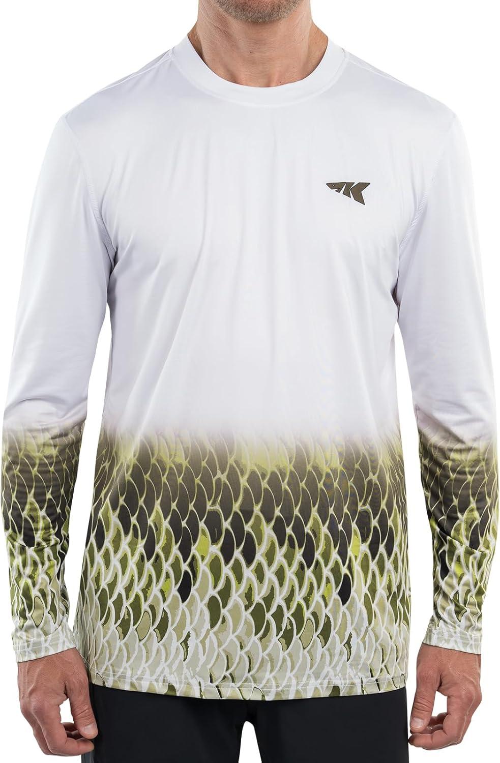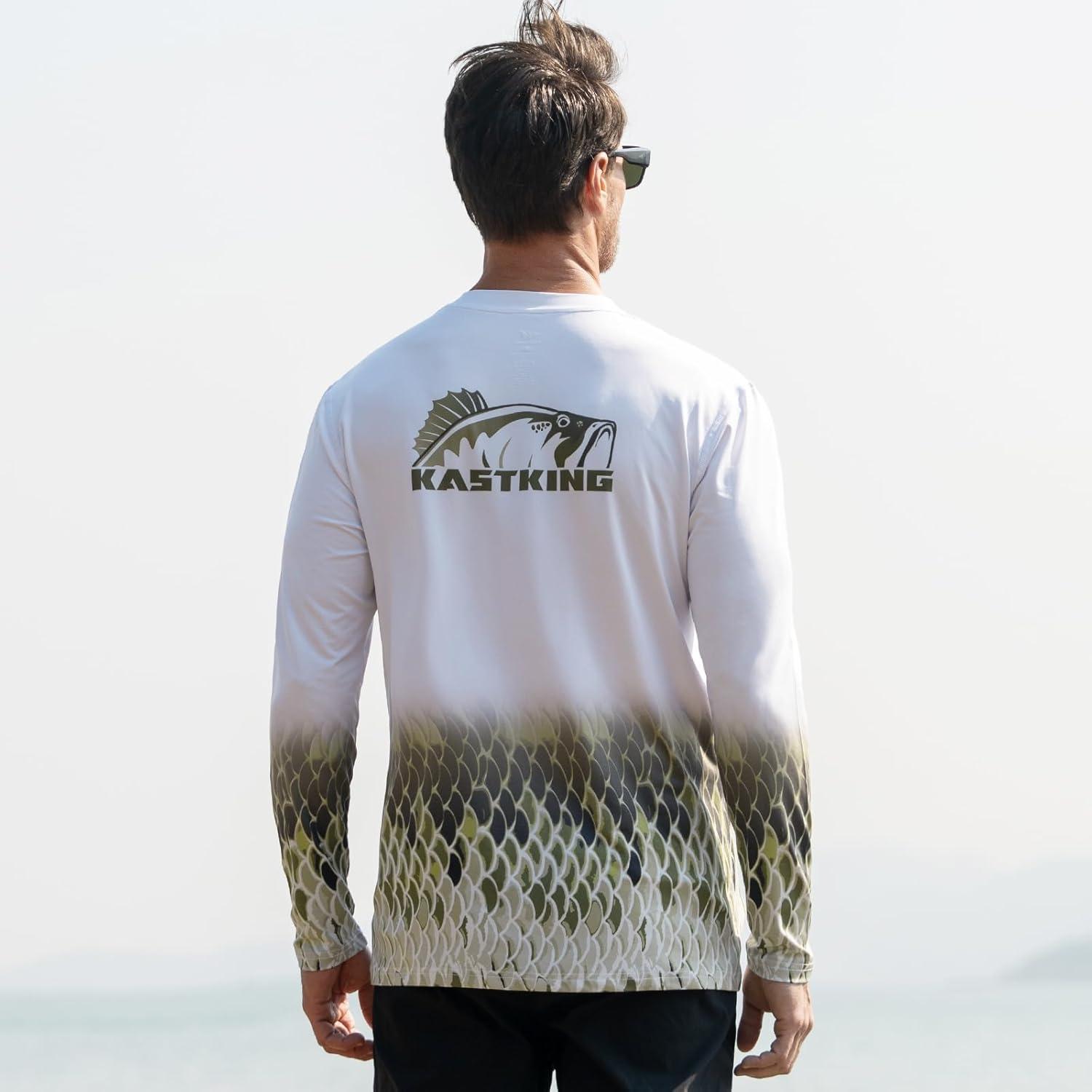 KastKing UPF 50 Fishing Shirts for Men, Long Sleeve Fishing Hiking Shirt, Breathable Moisture Wicking, Sun Shirts for Men(N:bass Fade)