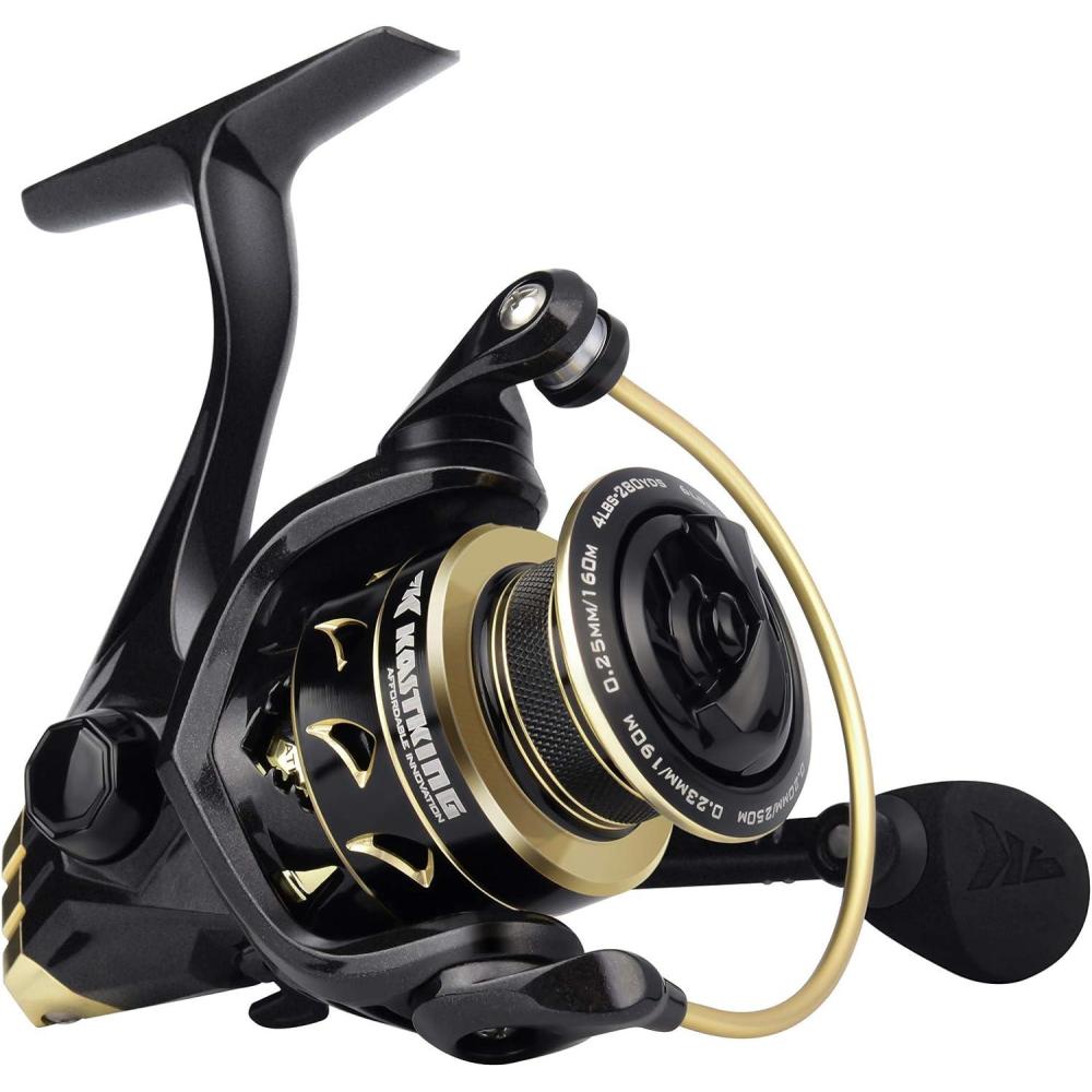 OUTSTANDING FEATURES – The KastKing Emerald Eagle fishing reel has a Patent Pending spool designed to increase casting distance and improve line control. Plus, its braid line-ready spool doesn’t need monofilament backing line before filling the reel with braided line to avoid slippage. The lightweight aluminum handle with EVA knob provides you with extra leverage and control. Fly like an eagle; a KastKing Valiant Eagle Gold spinning reel.