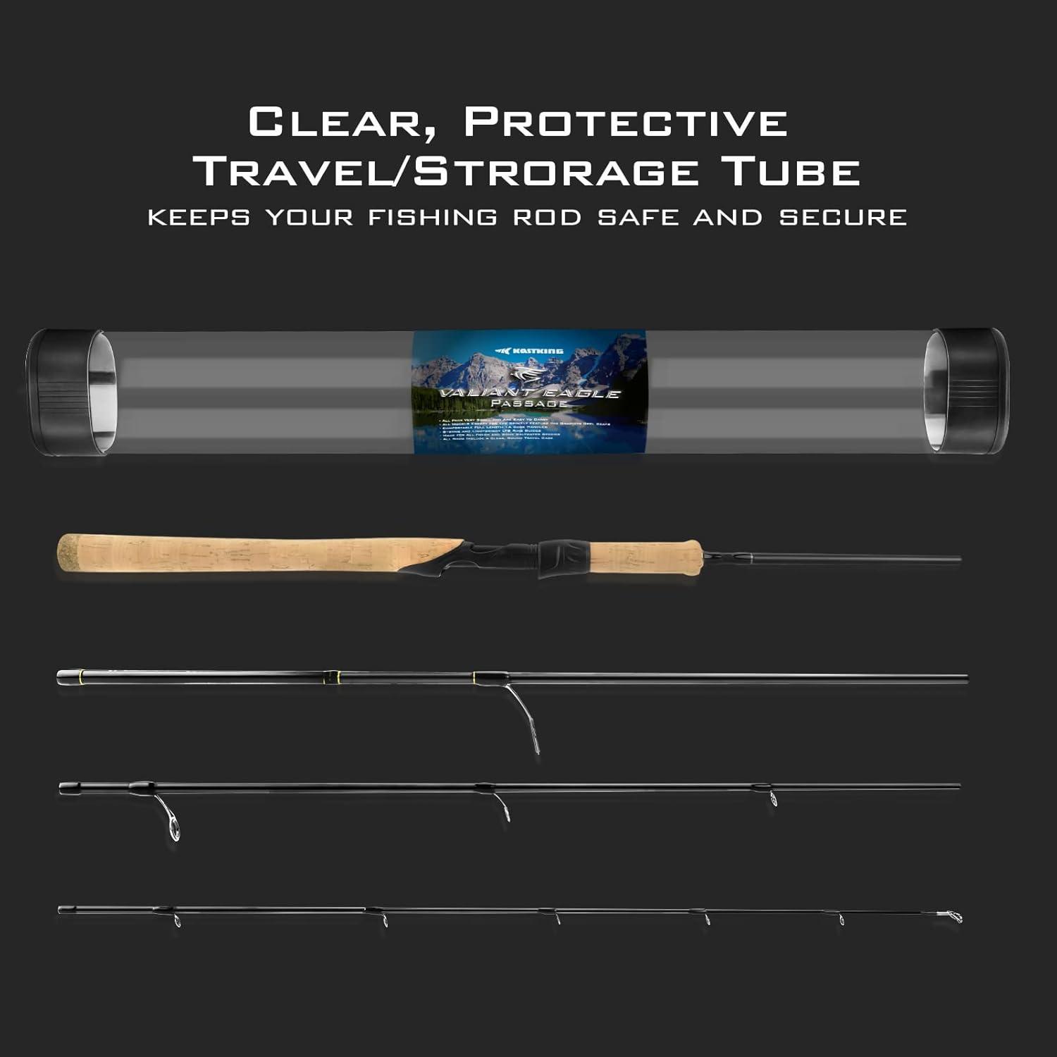 【Performance Components & Travel Tube】 – KastKing Valiant Eagle Passage Travel/Pack rods use premium components like cork handles and either graphite or CNC aluminum reel seats depending on the model. And every Passage travel rod includes a clear, PET tube that keeps your fishing rod safe and secure while you’re on your way to your next adventure. Never leave home without a KastKing Passage Travel Rod.