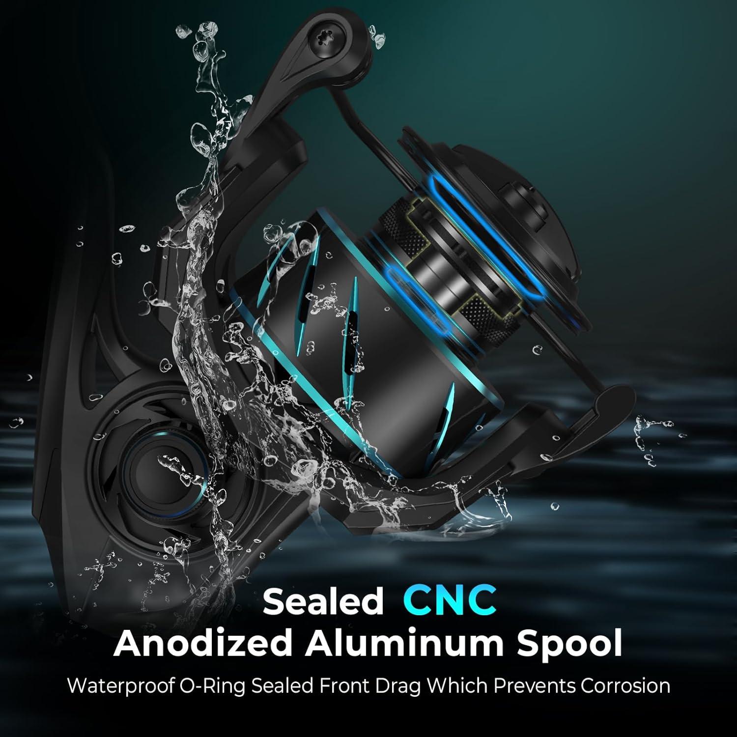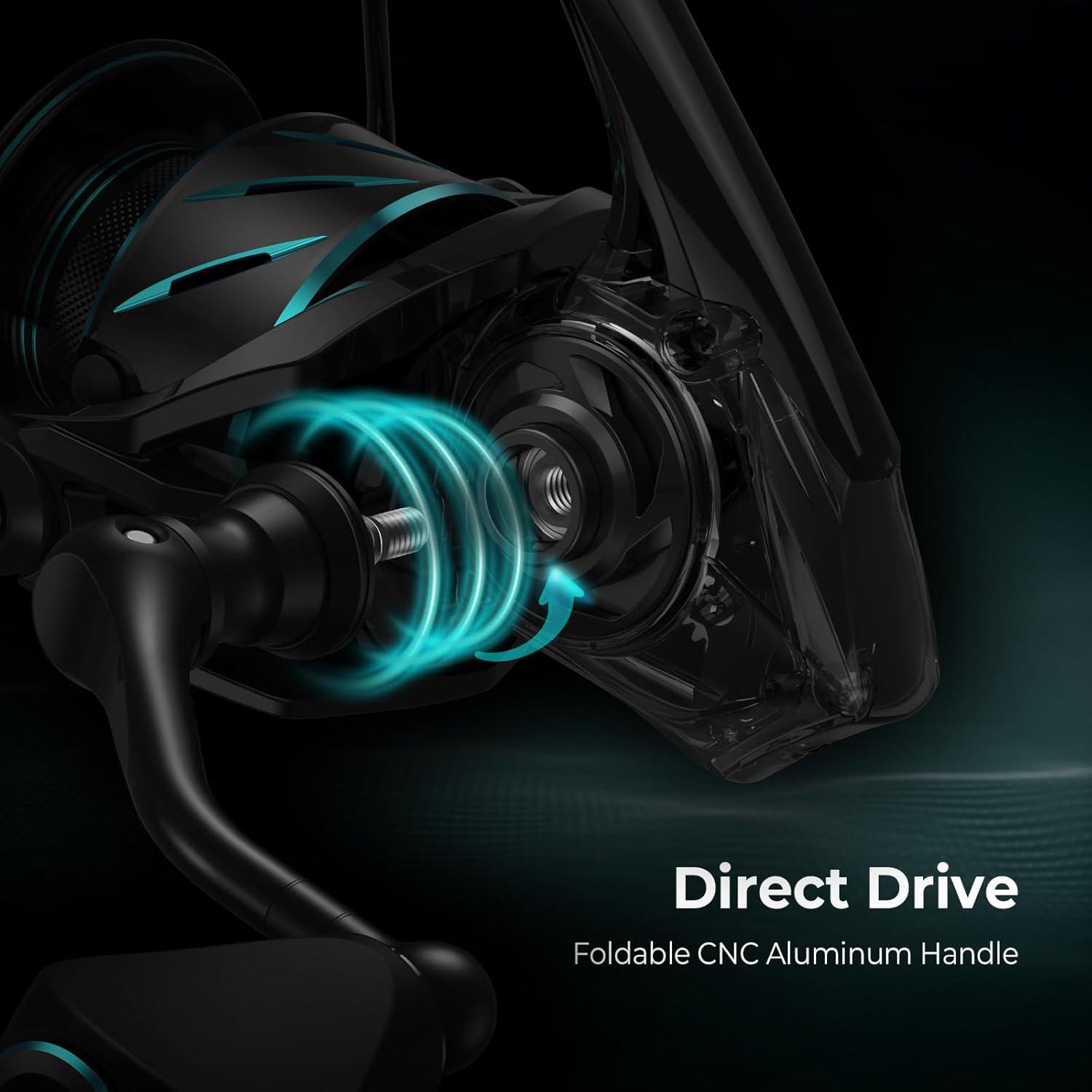 Enhanced Performance and Comfort: The oversized EVA handle knob not only provides a sure grip but also ensures precise control, offering you the perfect blend of comfort and command. Built for strength and lightweight convenience, this folding mechanism with its direct-drive CNC aluminum handle ensures easy storage without sacrificing durability, while the sealed CNC anodized aluminum spool, featuring a waterproof O-Ring sealed front drag, stands as a testament to corrosion resistance.