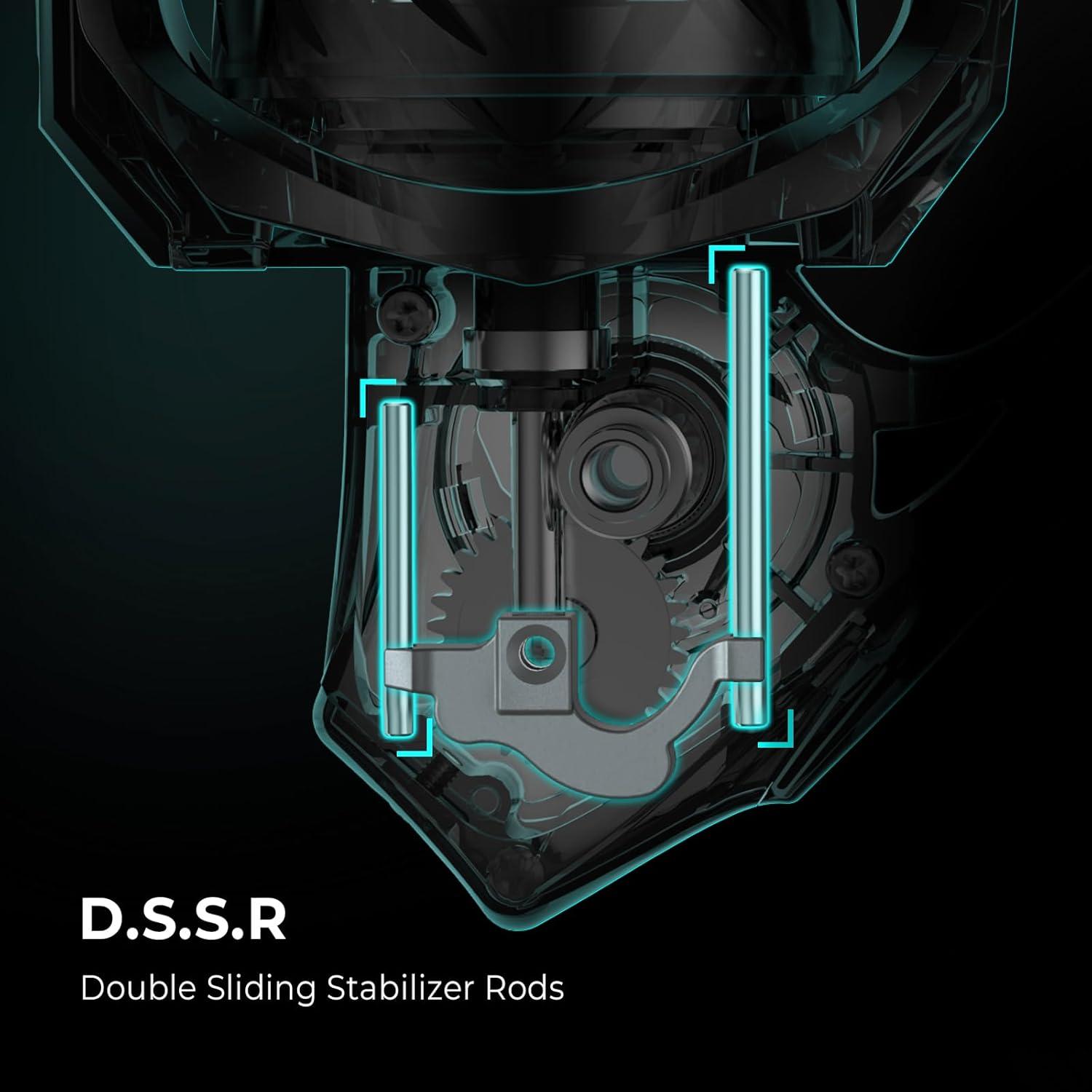 Precision Hybrid Gear: Sizes 2000/3000 feature a 6.2:1 retrieve gear ratio with a hybrid zinc alloy main gear, aluminum pinion gear, and aluminum main shaft for enhanced strength, reduced noise, and a satisfying feel. Sizes 4000/5000 offer added durability with a zinc alloy main gear, aluminum pinion gear, and stainless-steel main shaft. Experience optimal performance, thanks to the revolutionary D.S.S.R technology, ensuring heightened smoothness and durability.