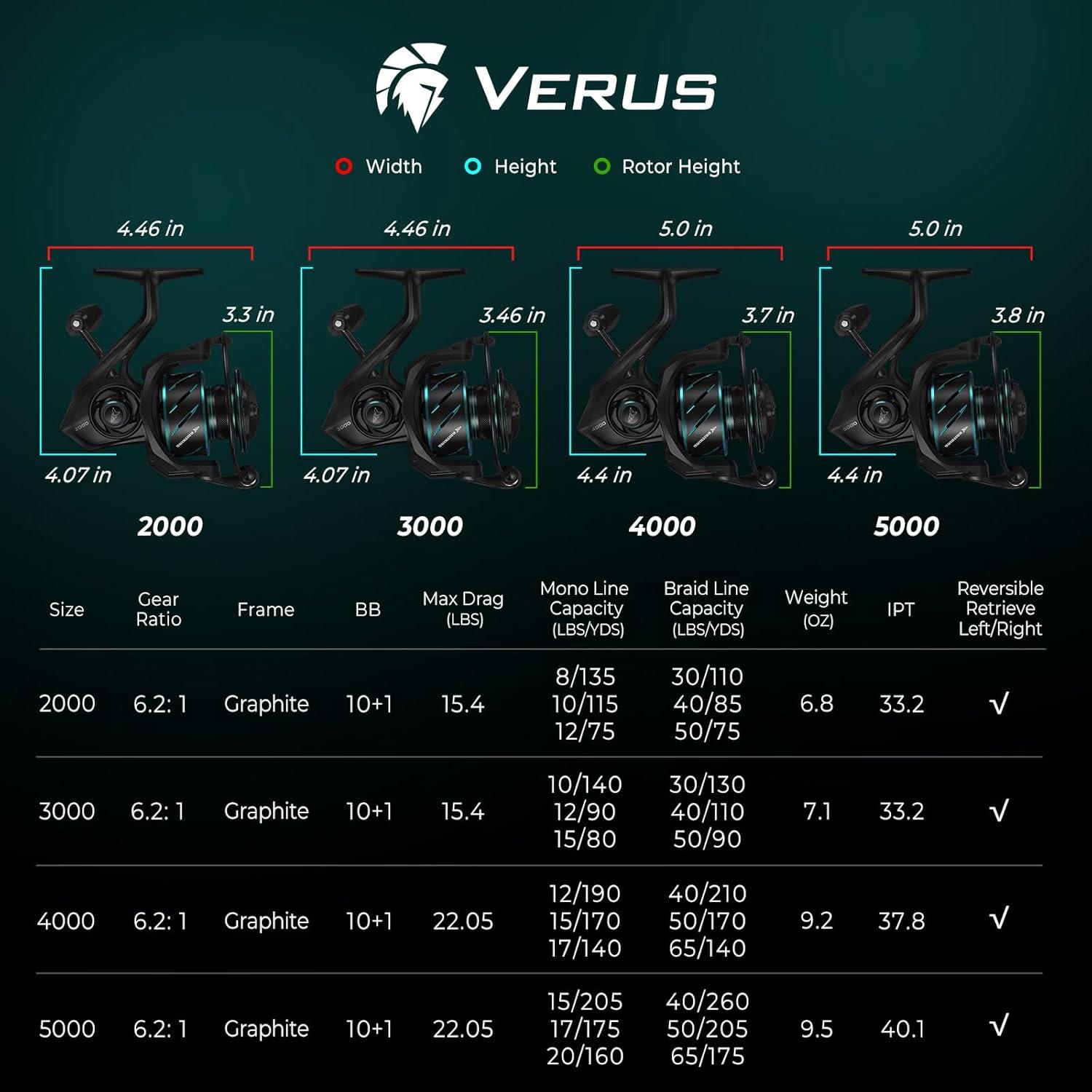 Feather-Light Performance: Engineered with glass fiber infused nylon body and rotor, the Verus Spinning Reel performs like a reel costing twice as much and weighs only 6.8oz. Its aerodynamic reel rotor not only reduces weight but elevates performance, ensuring an unrivaled fishing experience that's both agile and powerful.